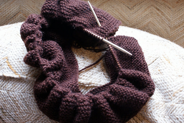 I know it just looks like an amorphous pile of garter stitch (that’s mostly because it is an amorphous pile of garter stitch) but most top-down sweaters look unpromising at the start. This one is going to be a February Lady. When I worked at Cloverhill, it seemed that everyone who worked there (except Matt) had one, so little lemming that I am, I set aside some brown Universal Yarns Worsted that I had stashed and waited for an opportune moment. I know brown isn’t exactly a spring color, but I’m one of those boring people who wears brown and corderoy all year ’round, so I am unfazed by your criticism. I didn’t even think about the fact that it’s February when I cast it on, though I don’t have high hopes of it being finished in February. If it’s done by Lent, I’ll be more than pleased, and I’ll wear it with the remainder of the cold, wet, miserable weather that is doubtless still on its way.