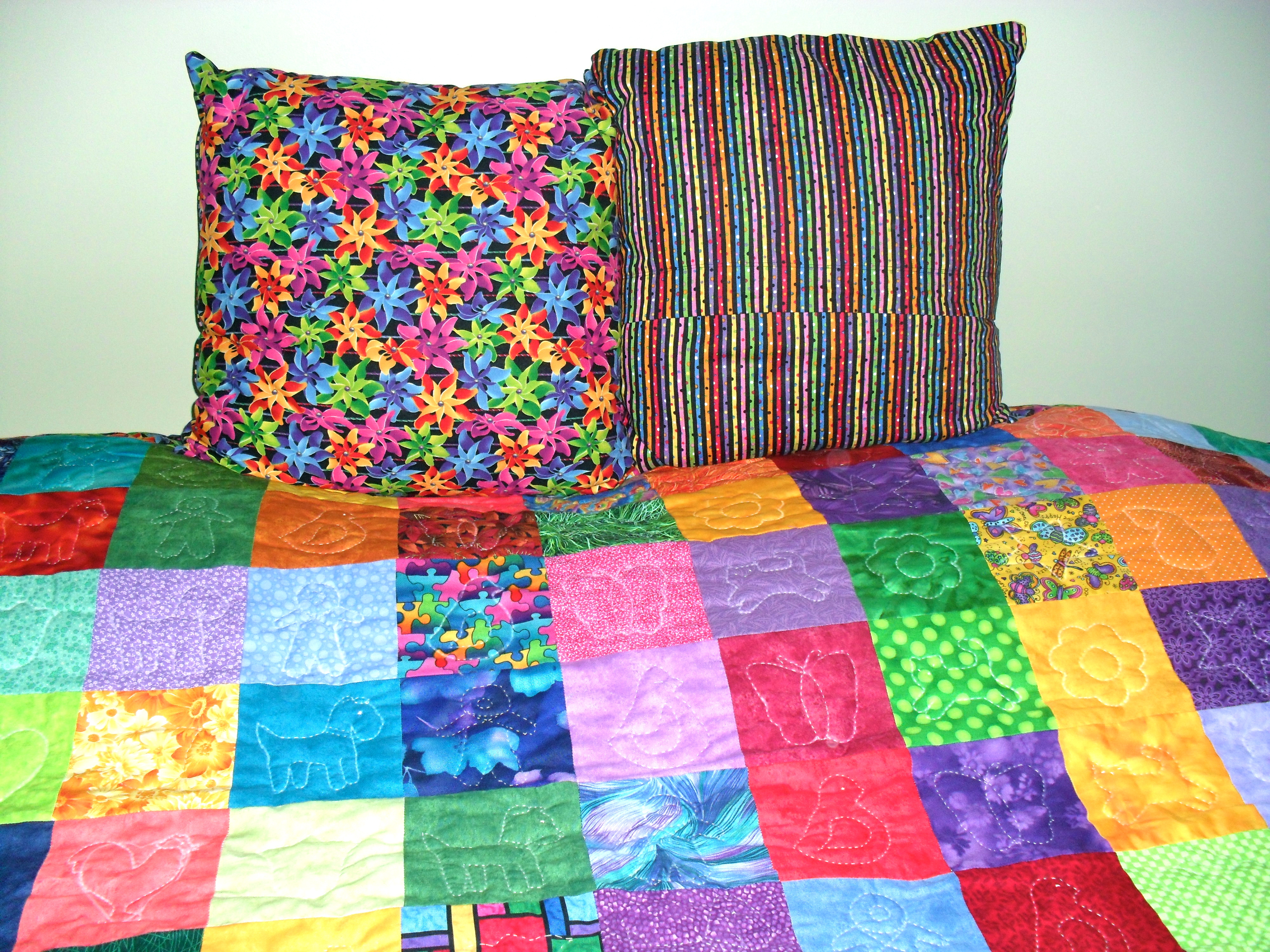 To understand how amazing this quilt looked to me, you have to know that I LOVE rainbow colors. Given a choice, these are the typical things I knit for ME:
