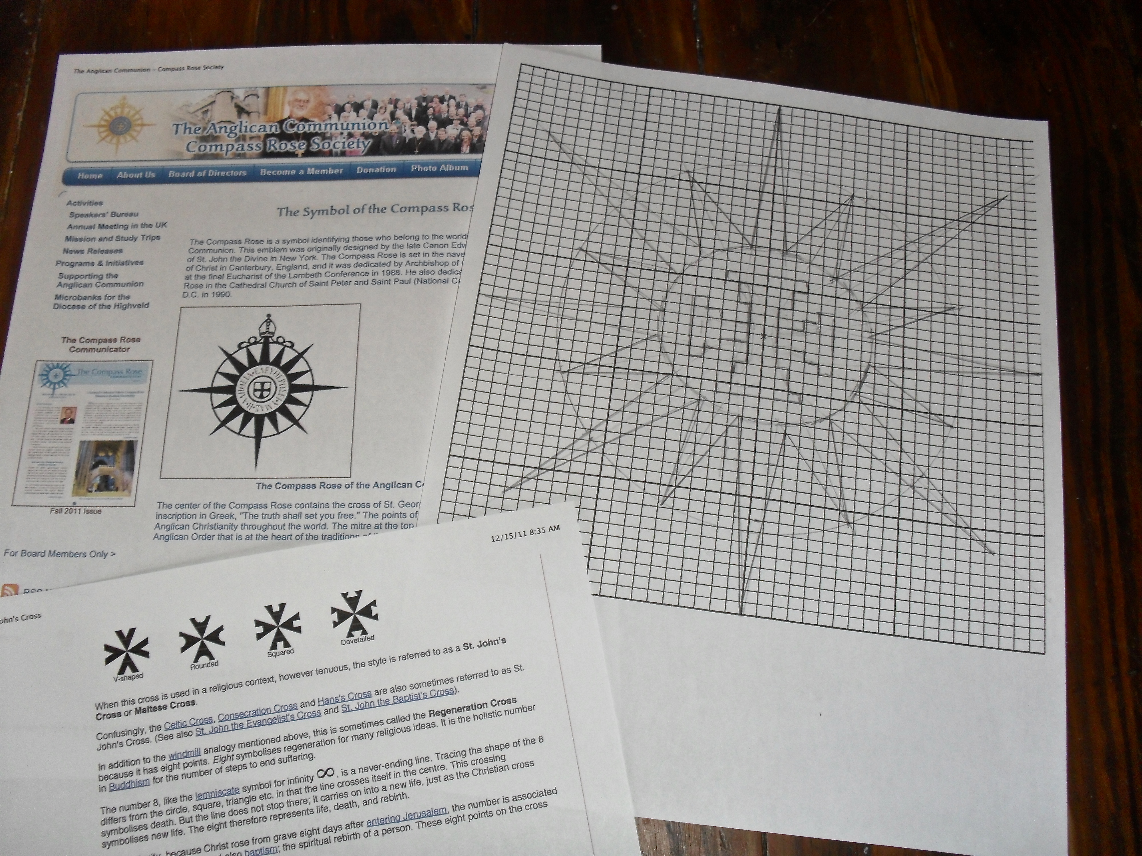 One is called the Maltese Cross or St. John’s cross. The other is called the Compass Rose of the Anglican Communion. Since Jared is studying to become an Anglican priest, I thought he would like that one especially.