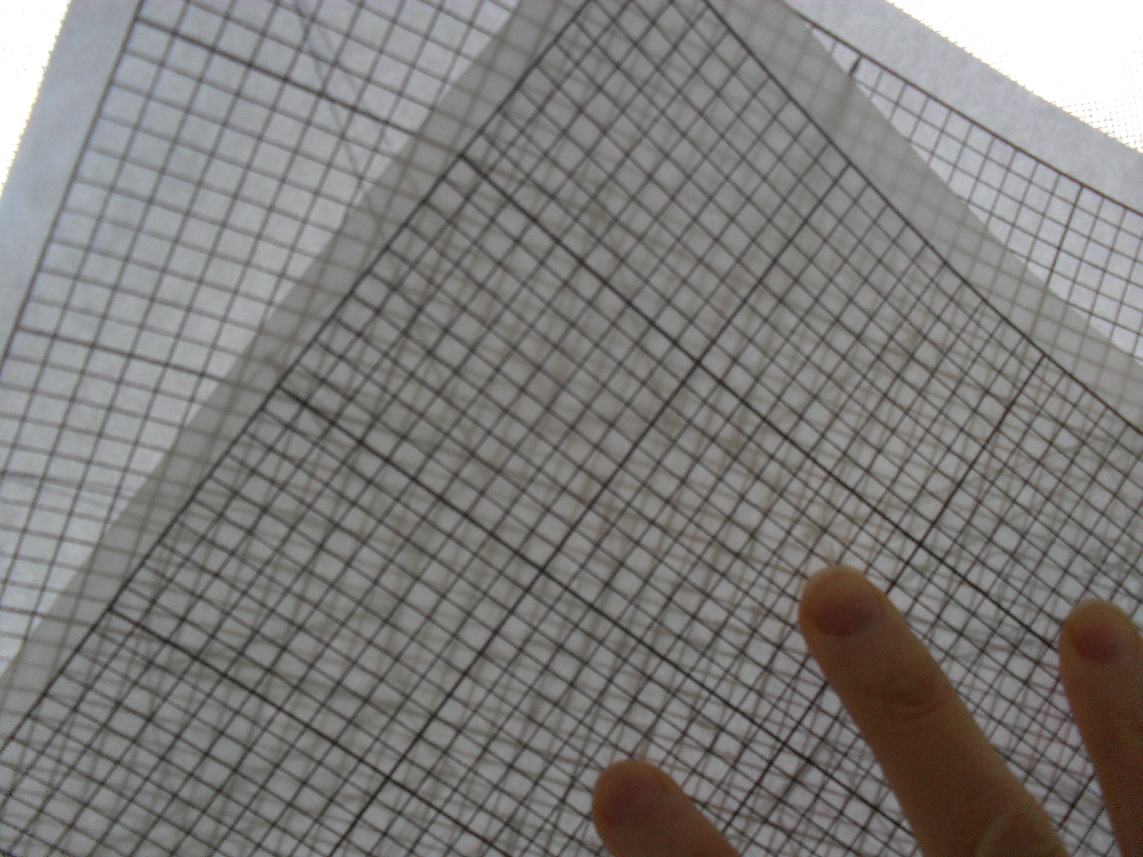 Once I copied the cross picture onto the graph paper, I needed to translate that into actual knitted stitches. I did this by using my window as a light box, and translating the shapes into the rectangles the best I could. It ended up like this: