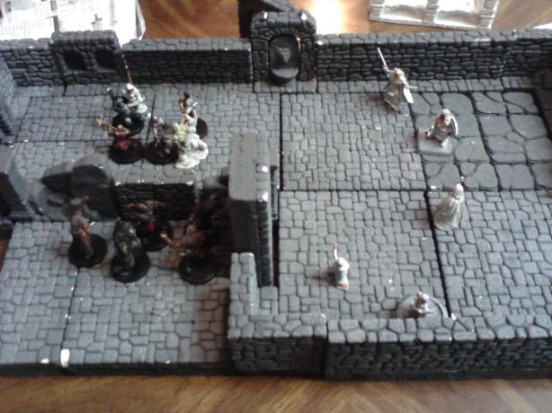 Last night, we left our dungeon master’s house around midnight, as is our usual Monday night routine. The scene had faded to black in the midst of an epic battle, carried on to the sounds of thunder on a stormy night in late spring. My halfling rogue is the upper-left-most character in the picture below.