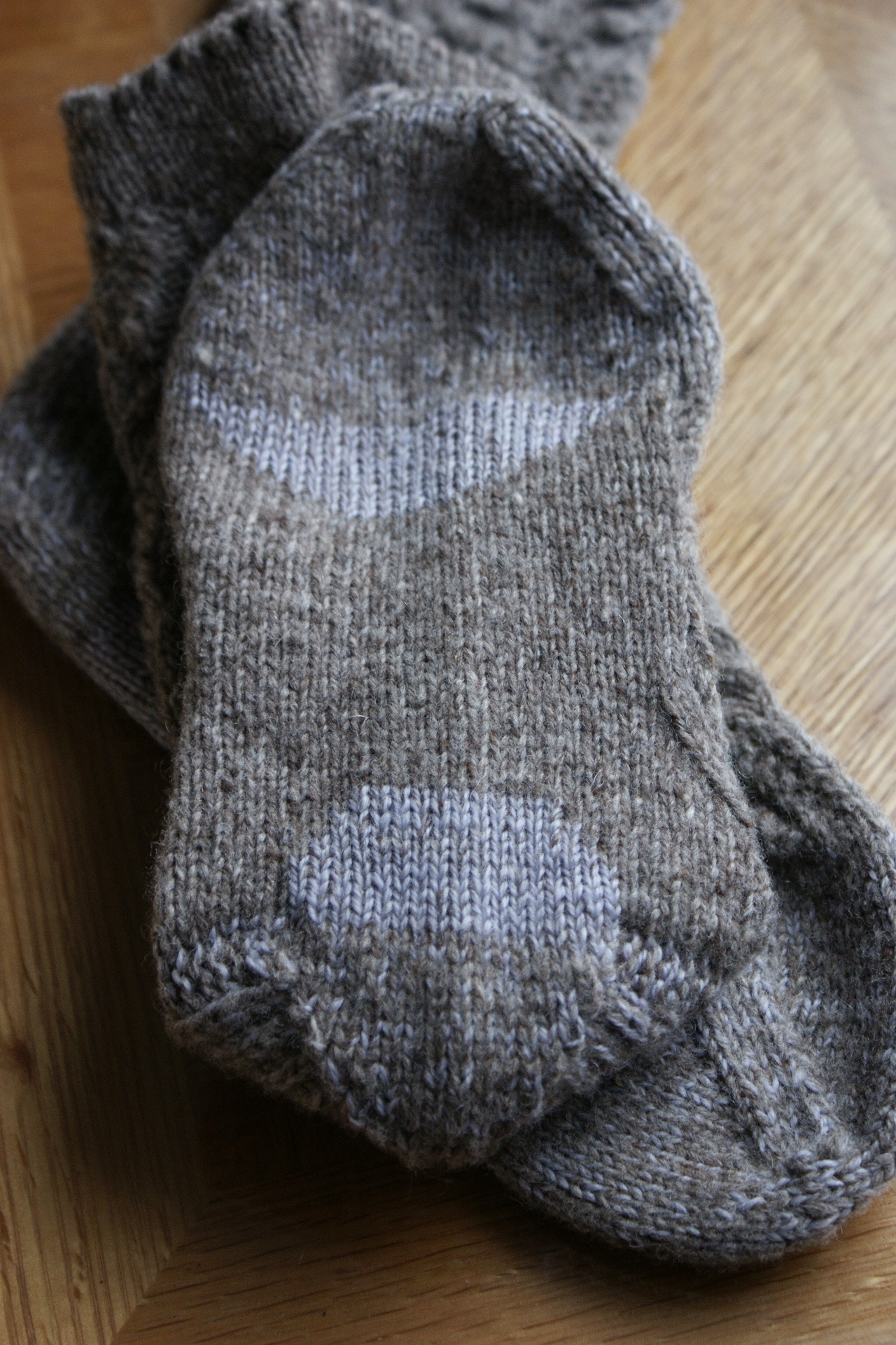 That said, the yarn itself was beautifully natural stuff, clearly closely related to the sheep it was shorn from. I would love to use it for a light sweater or shrug, for fingerless mitts, for mittens, for a lace shawl – just about anything other than socks! But I am very proud of the finished product, if I do say so myself.