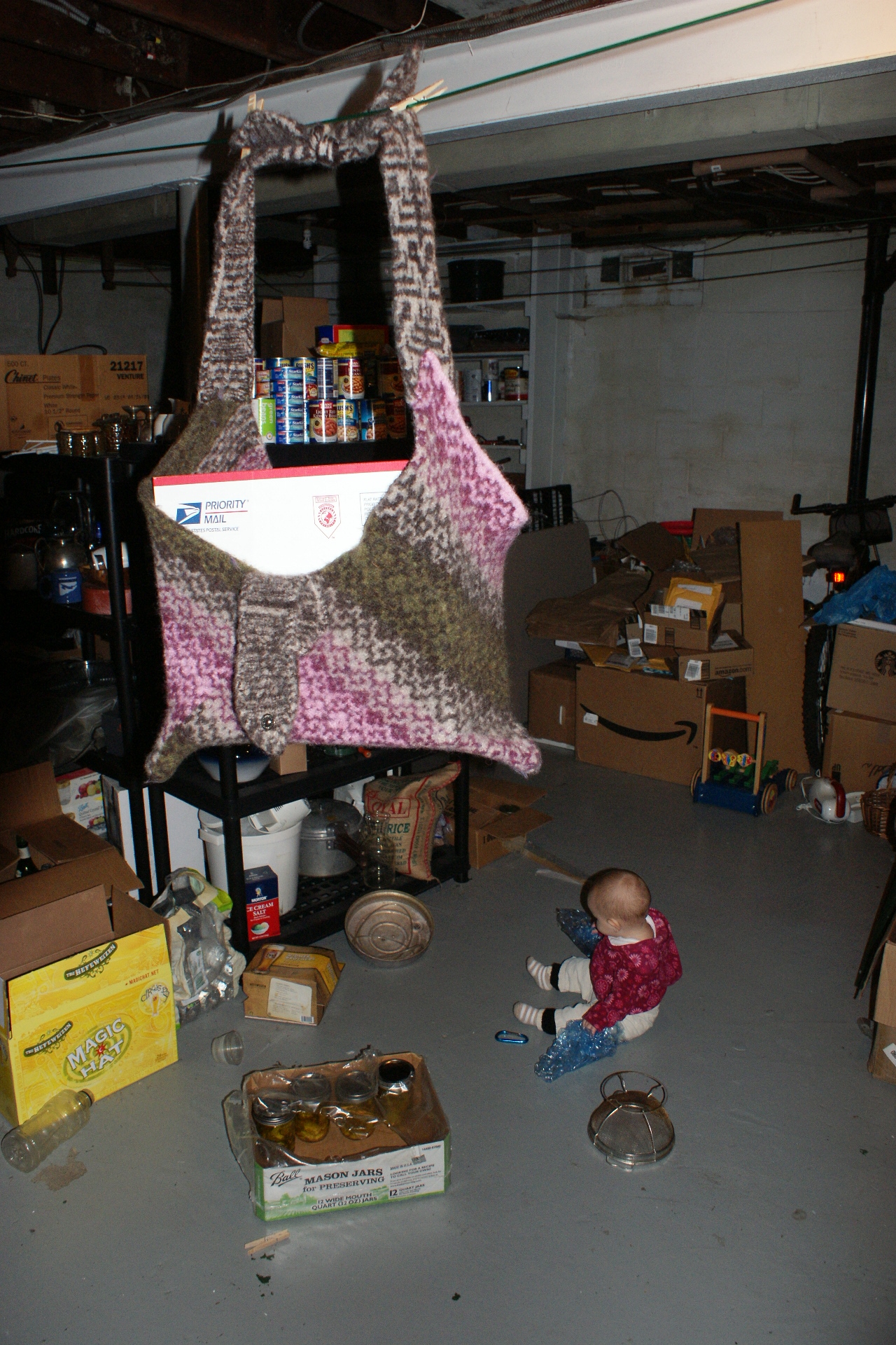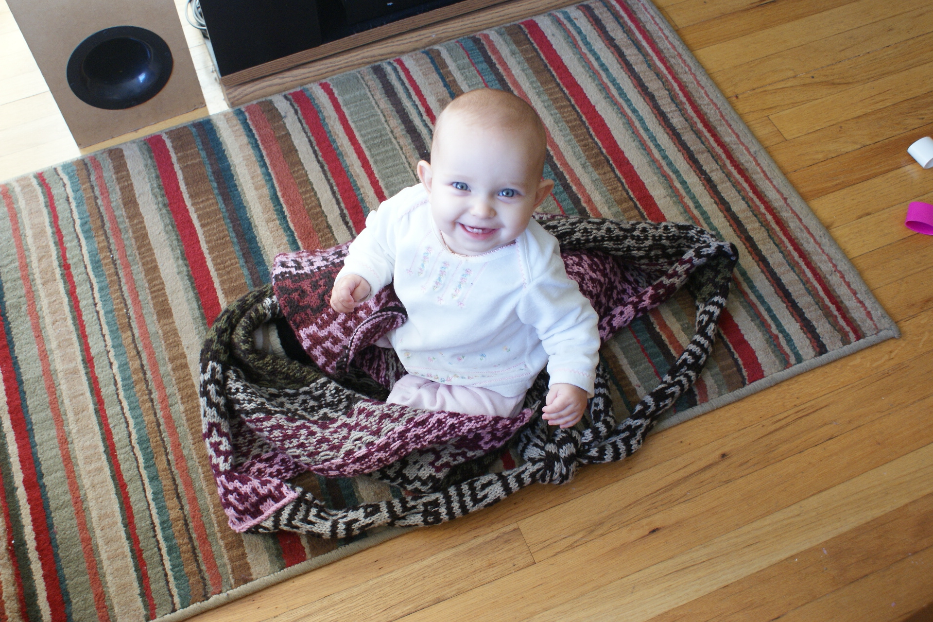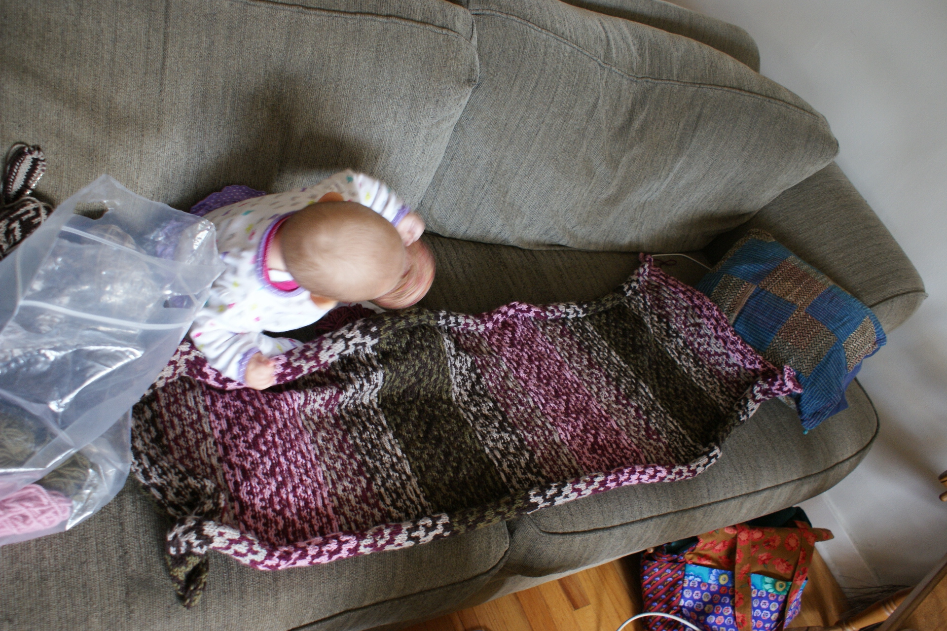 It looks pretty in these pictures, for which I am glad. The stitch pattern is beautiful, and I think I should get a ruddy Pulitzer for my color selection. But its usefulness as a bag is going to be limited. With a few extra instructions, or some extra attentiveness and experience on my part, these problems could have been averted. I hope I have provided some help for others to make this piece with more success.