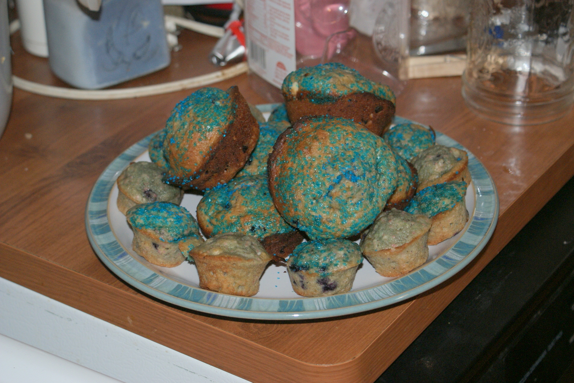 2) Whip up a batch of blueberry muffins, and wish they were bluer.