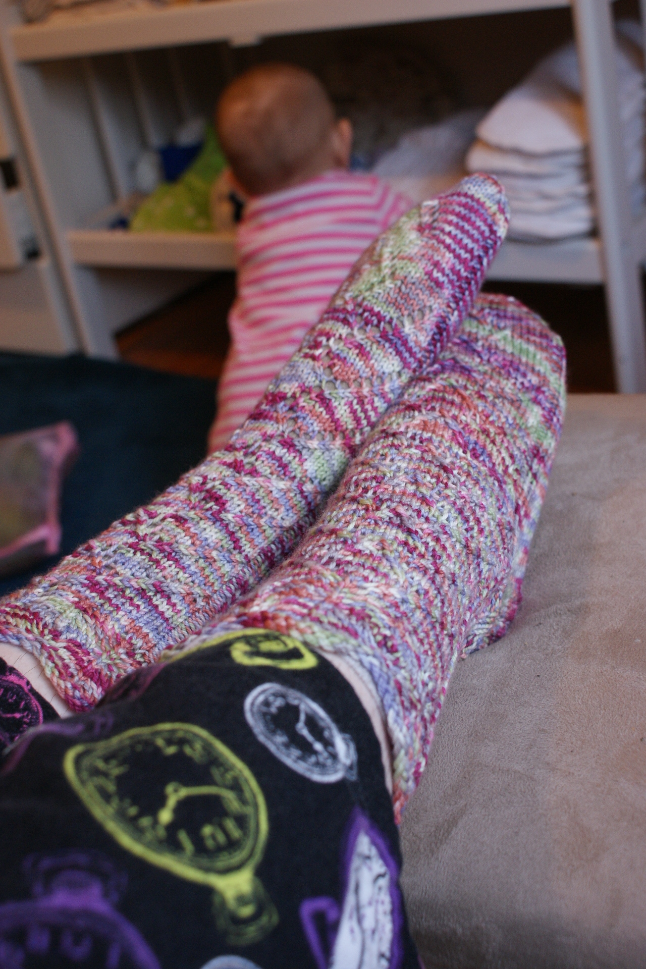 This is the most that Naomi and I had ever been separated in the course of a given week. But she was ready. Classes tend to time very well around her naps, and she was more than happy to play with her attentive Deedee. And I got to console myself with plenty of good knitting time.