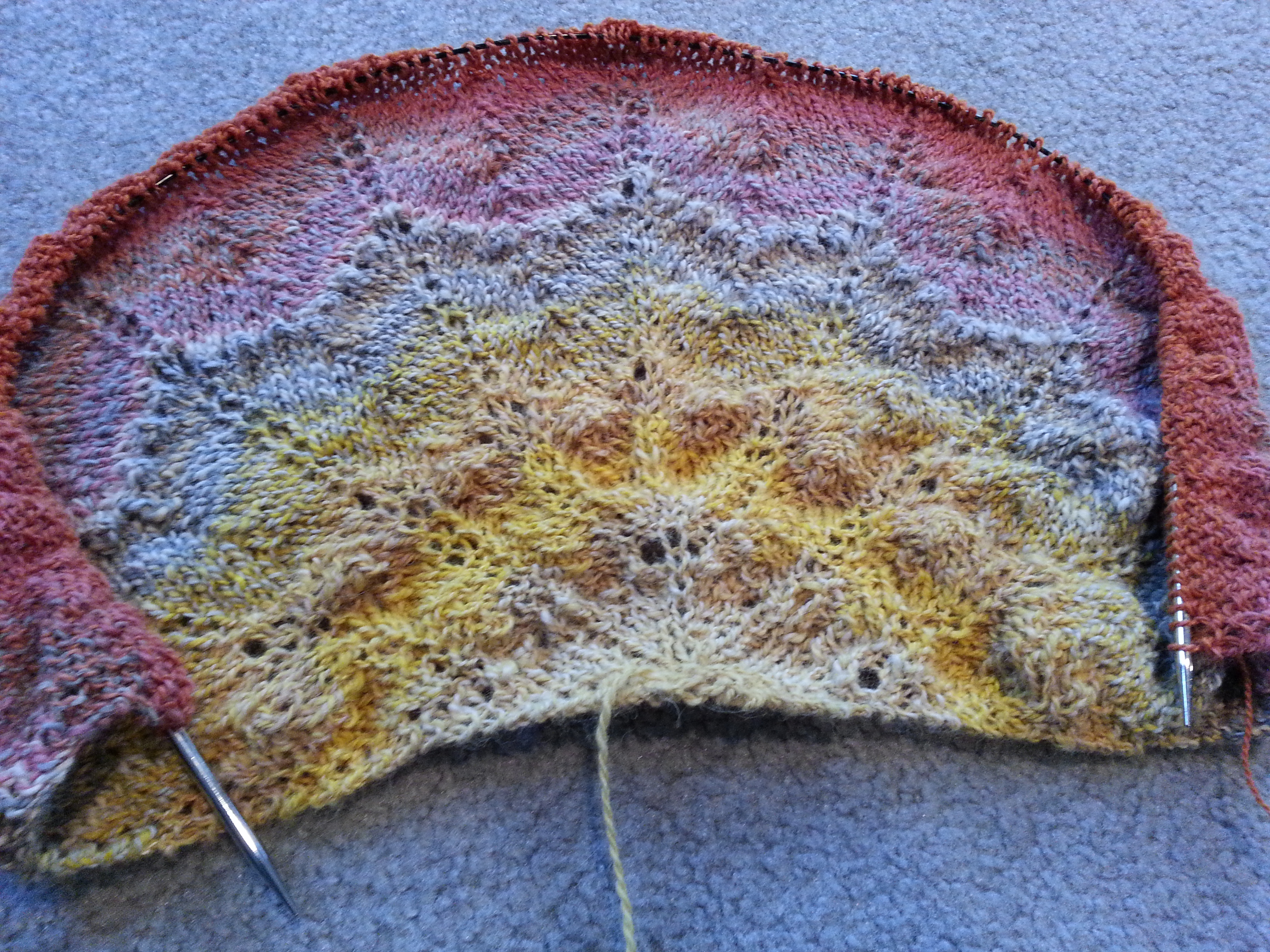 Yes, Belinda, the pressure HAS affected my work….AND of course the fact that my eyes are so glued to the competition. I’ve had to get very adept at fixing dropped stitches…..3 so far. I am really counting on the Eucalan to relax some of those overly-tight stitches.