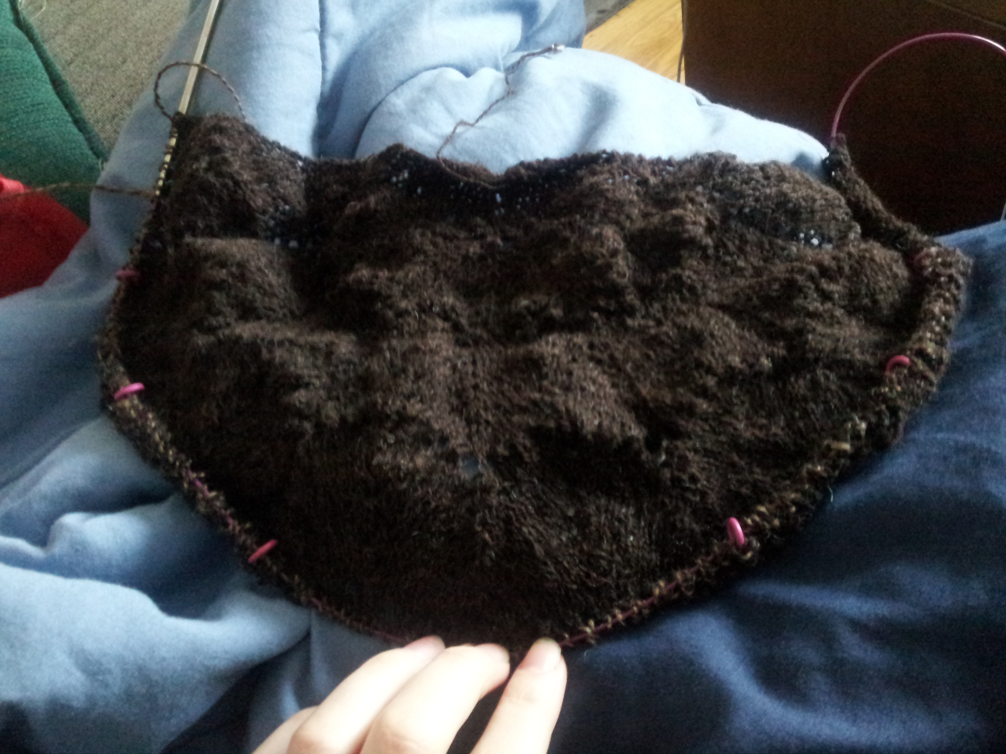 Also, the reason I am not using stitch markers is because every one I own is already in use on one of my other 13 wip’s! To compensate, I count. Between each section, I count the stitches because sometimes it’s hard to spot that purl stitch nestled in the middle.