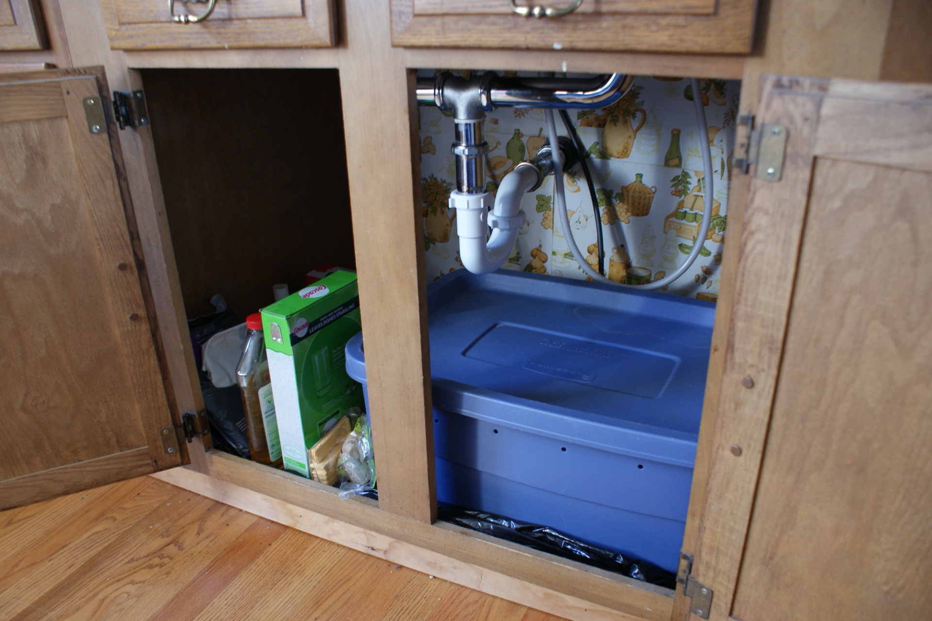 The kitchen sink cupboards have been rearranged (read: contents decimated) to be our worms’ new home. All I need now is a handful of dirt and some worms, and we can start feeding them our coffee grounds, and the celery and carrots I always let go bad in the fridge. Hooray!