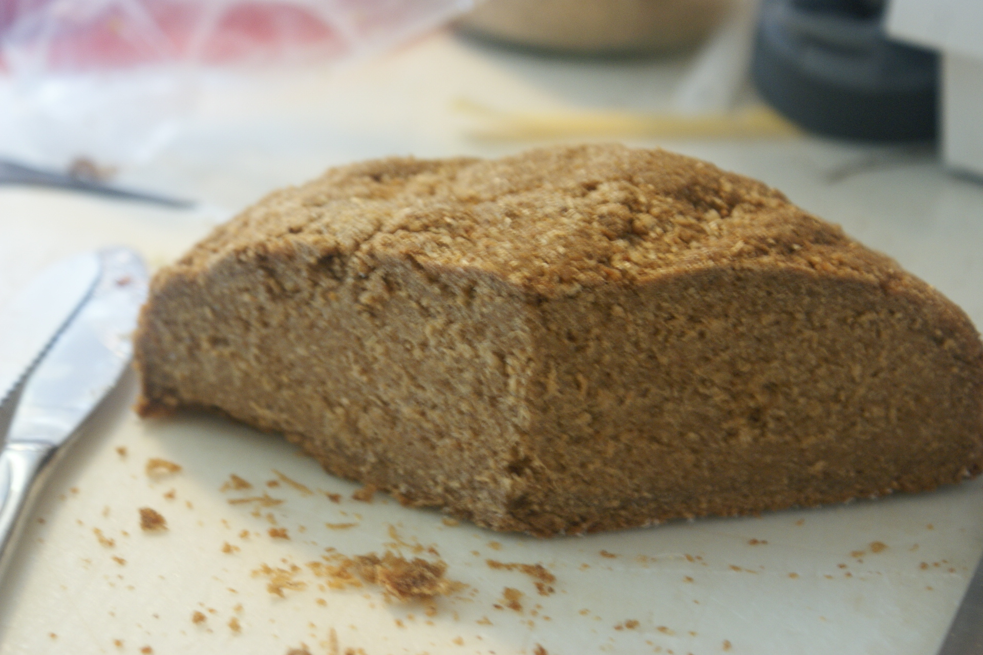 Mercifully, it is not inedible. It is soft enough for its ridiculous density. I just cut it really thin and treat it like a cracker, loading it up with butter and strawberry jam. So, a bit of a failure as far as baking is concerned, but functional enough to test the chemical substance on my body.