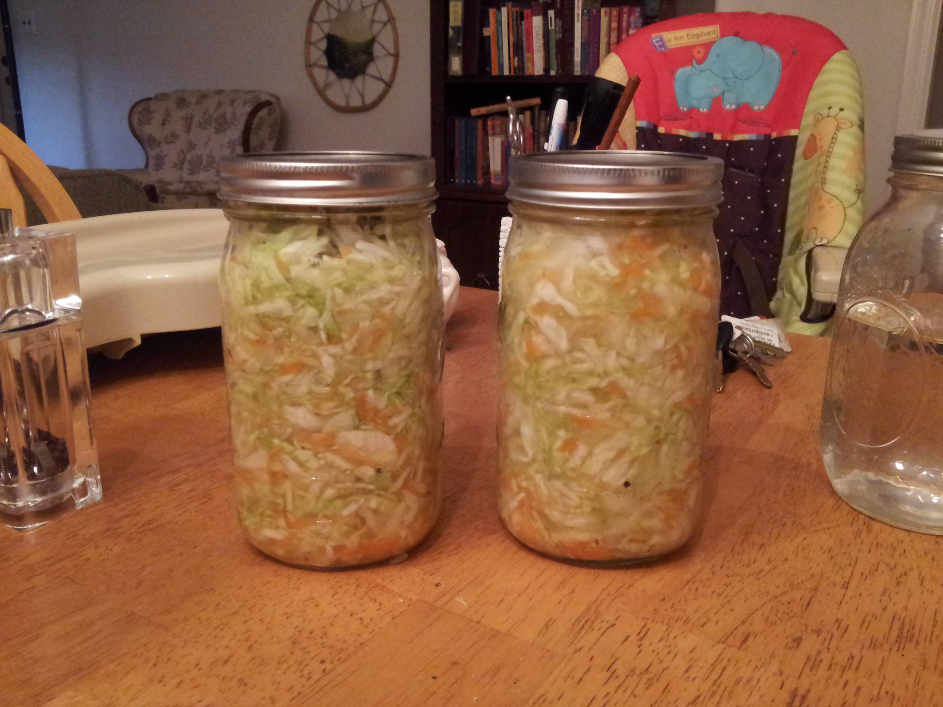 I also learned a lot about leaving headspace. Because, more or less, I didn’t. So, during the room-temperature fermentation stage, I’d be working in the kitchen and hear sudden bubbles, hisses, and pops from the corner. It was downright creepy. Then I kept finding them in a puddle. I am glad they are calmed down and living in the fridge now, and I hope their hissy fits didn’t mess up the seals.
