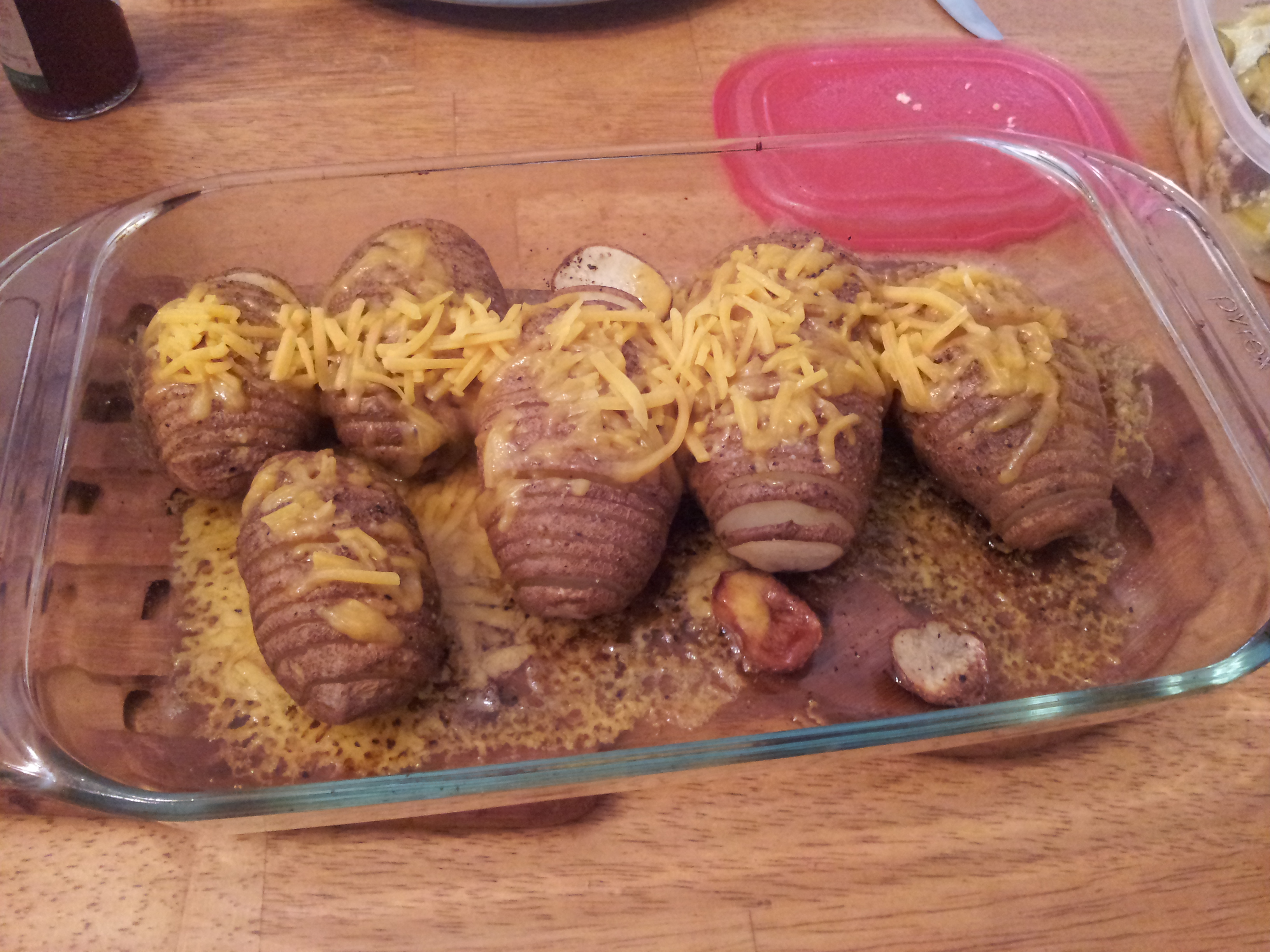 My version turned out like underdone baked potatoes that were sliced funny. The best part about them was all the melted cheese (my last-minute addition) that crusted to the bottom of the pan.