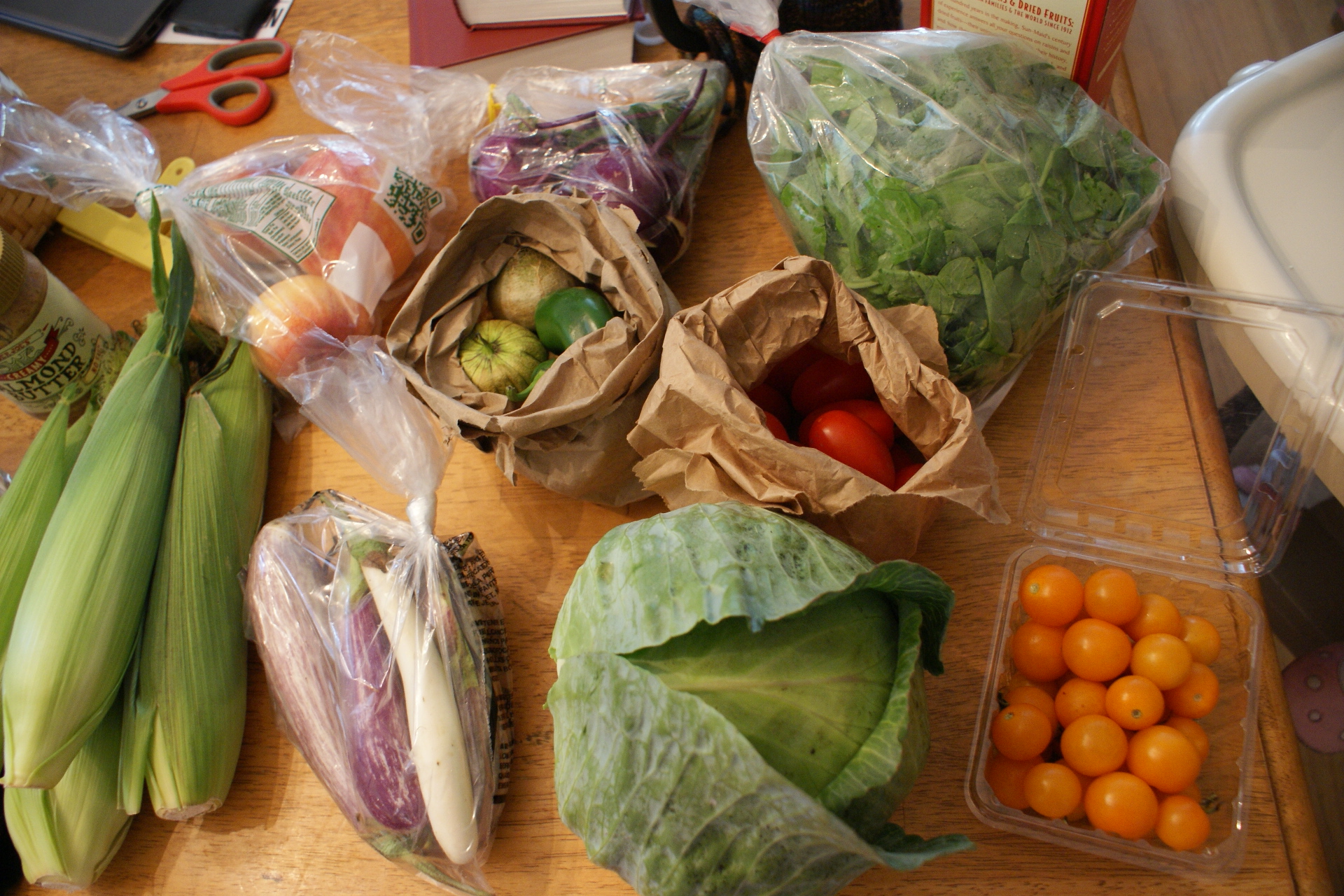 - sweet corn: Ate it on the cob within a few days, just like it was meant to be eaten. Managed not to overcook it this time.