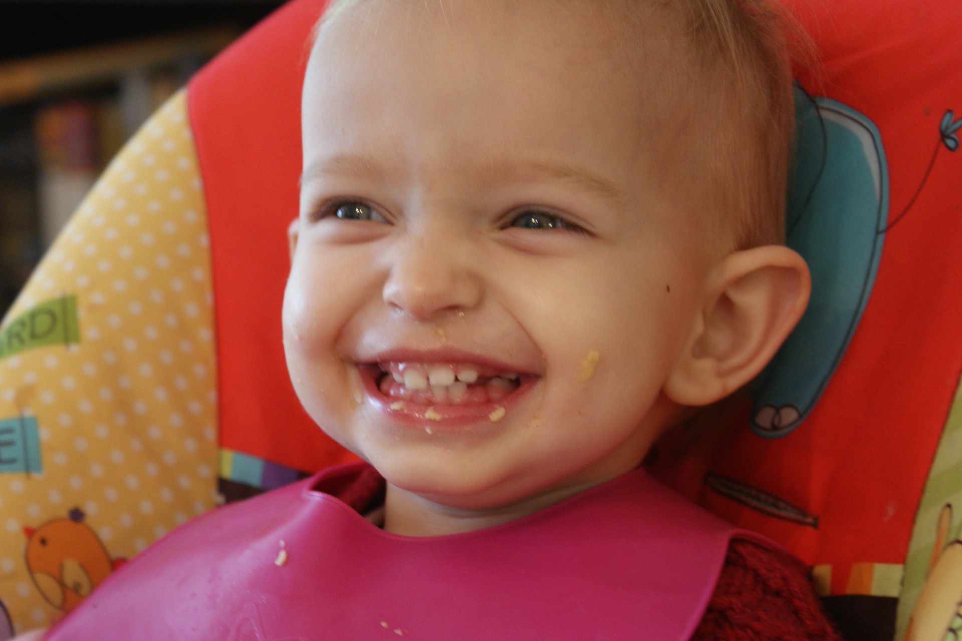 A transitional note to say that, a funny thing happened while I was chopping celeriac during Naomi’s snack time (a frequent strategy these days). I pull out the camera to take a picture of the veg, and she says “CHEESE!”