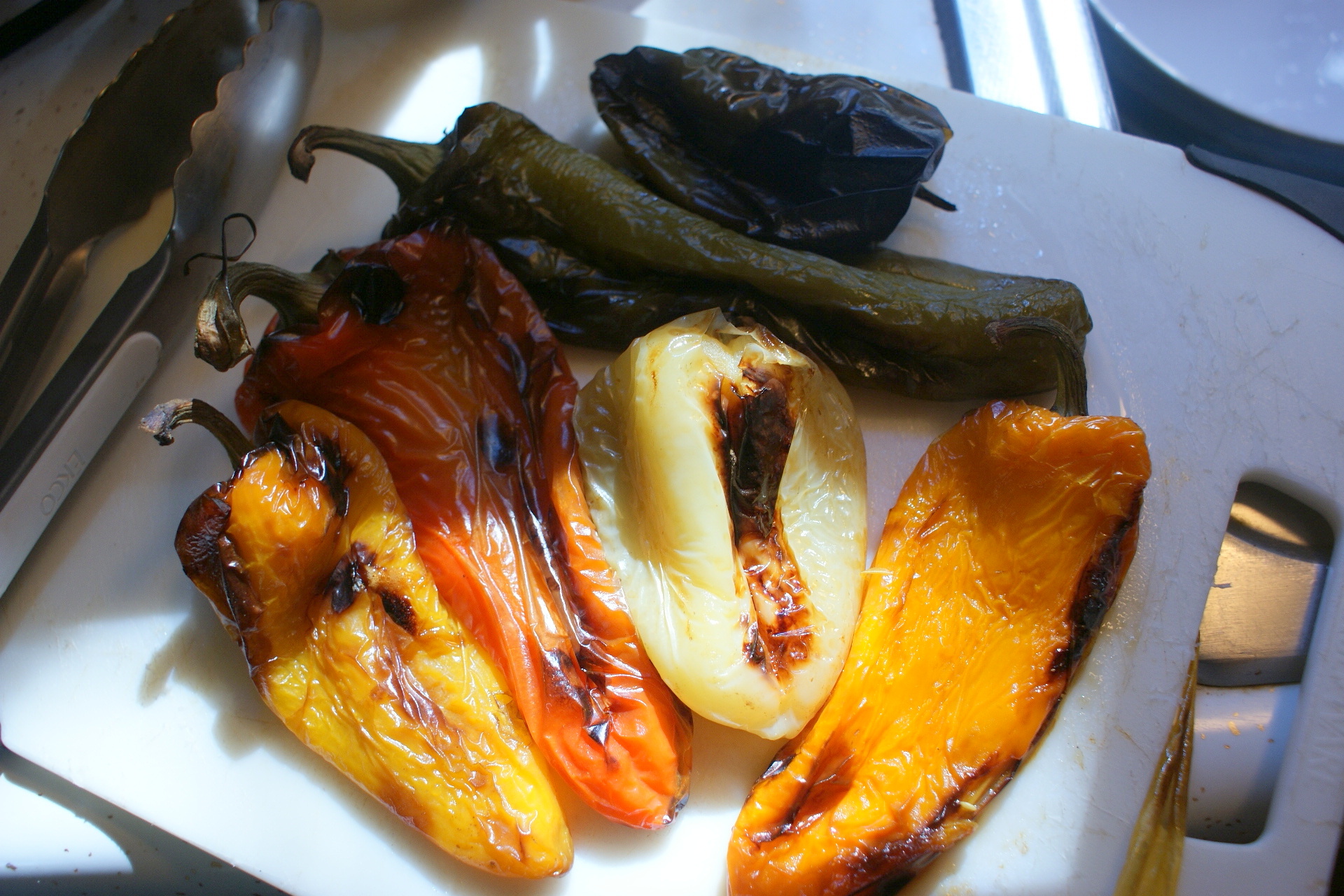 Anyway. I will conclude this endless tale of produce with the fate of my hoarded sweet peppers. As you can see, the collection of bells, poblanos, carmens, and who knows what else had gotten a bit out of hand. They were starting to wrinkle in protest of their abandonment in the crisper.