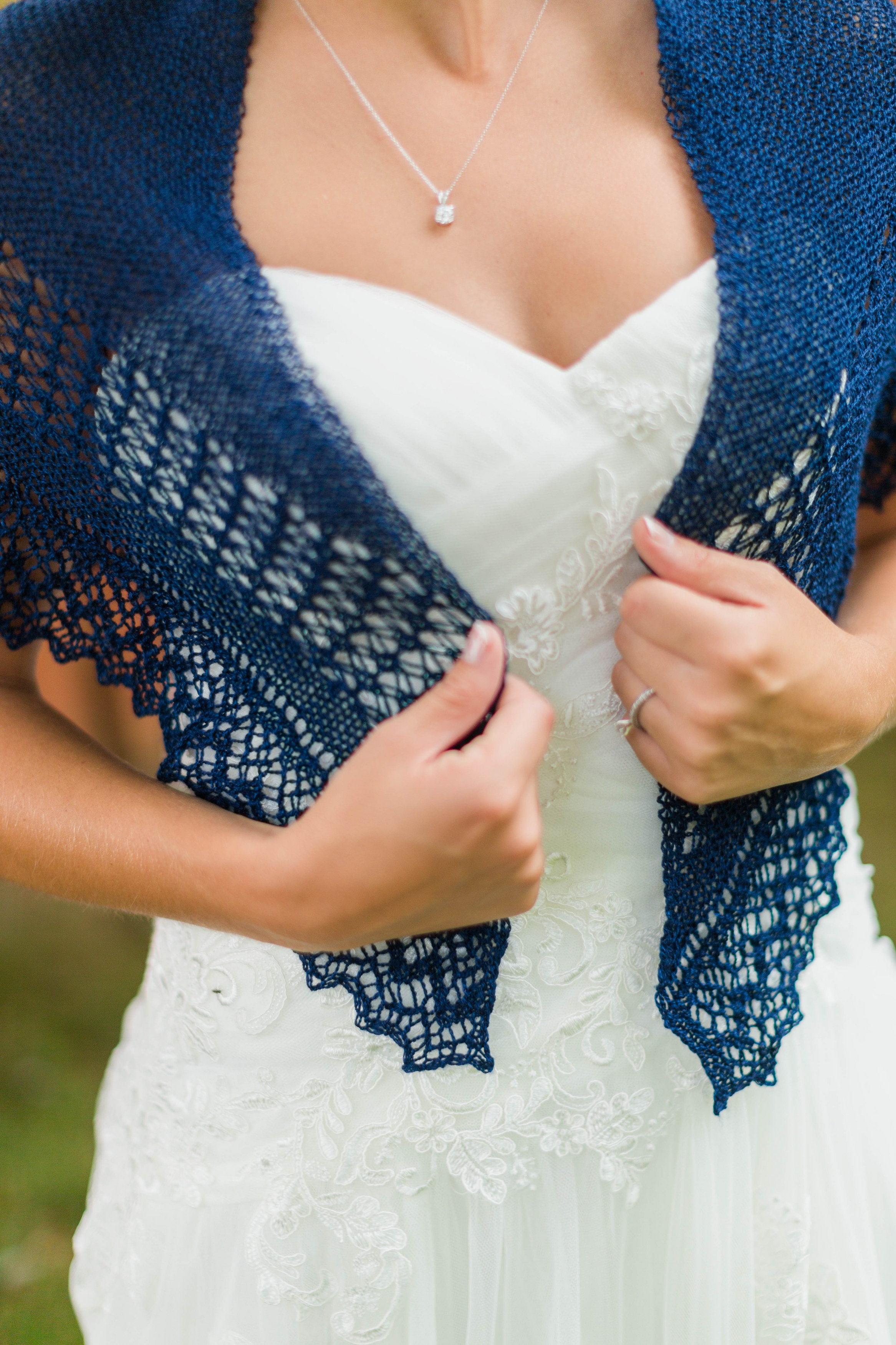 I kept the above pictures to myself this long because the shawl ought first to be the in the hands of the bride herself. And because I was hoping to show you its pictures on the shoulders it was made for. You can imagine my happiness when, after the big day, she had chosen to include it in her photo shoot. (All pictures from the wedding are by Stephanie Dee.)