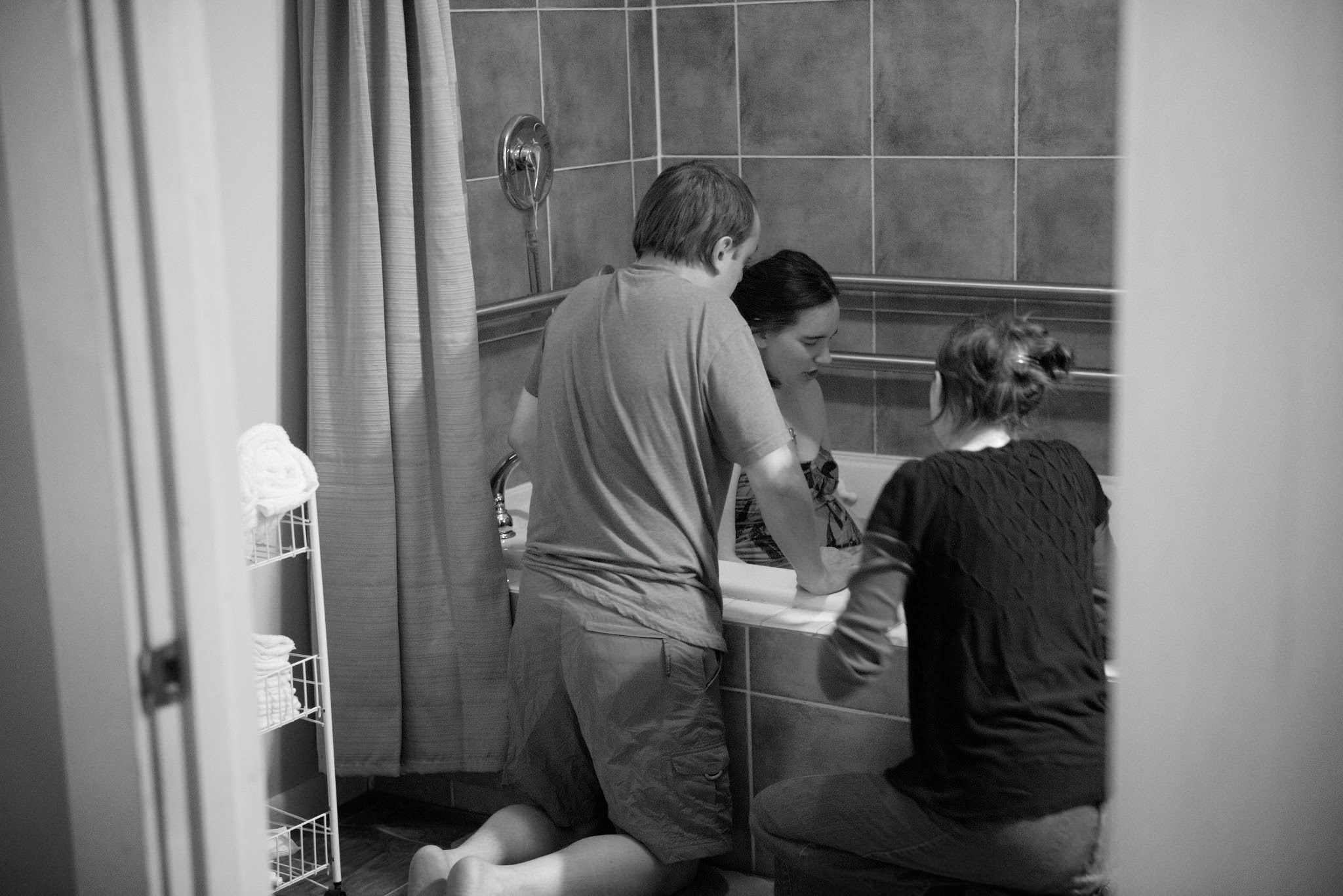 “Rebecca,” Theresa asked in a clear voice, “Do you want to give birth here?” meaning beside the tub.