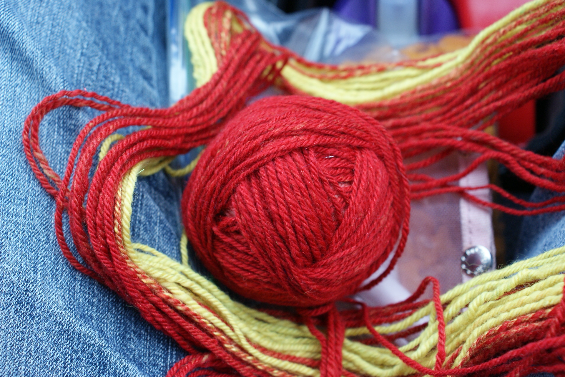 Since my ball winder is on a boat, I wound the first ball by hand while we drove up to Baltimore to go to the O’s game. I did a mobius cast on as we drove home. My cast on number was an absolute guess, based on the probable gauge and the vague idea of a small infinity scarf. I decided on a simple moss stitch – like seed stitch but double the height – for no other reason than “it seemed about right.” Also, it’s reversible, which is important but not essential for the mobius thing.
