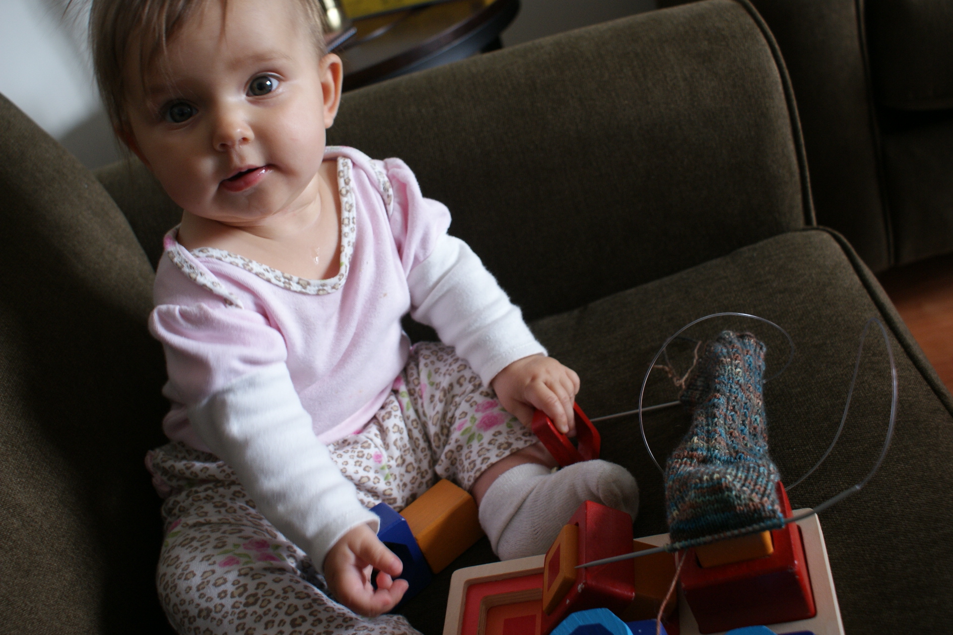 My knitting has slowed to a snail’s pace. We’ve been here a month and a half, and I’ve got one measly sock to show for it.