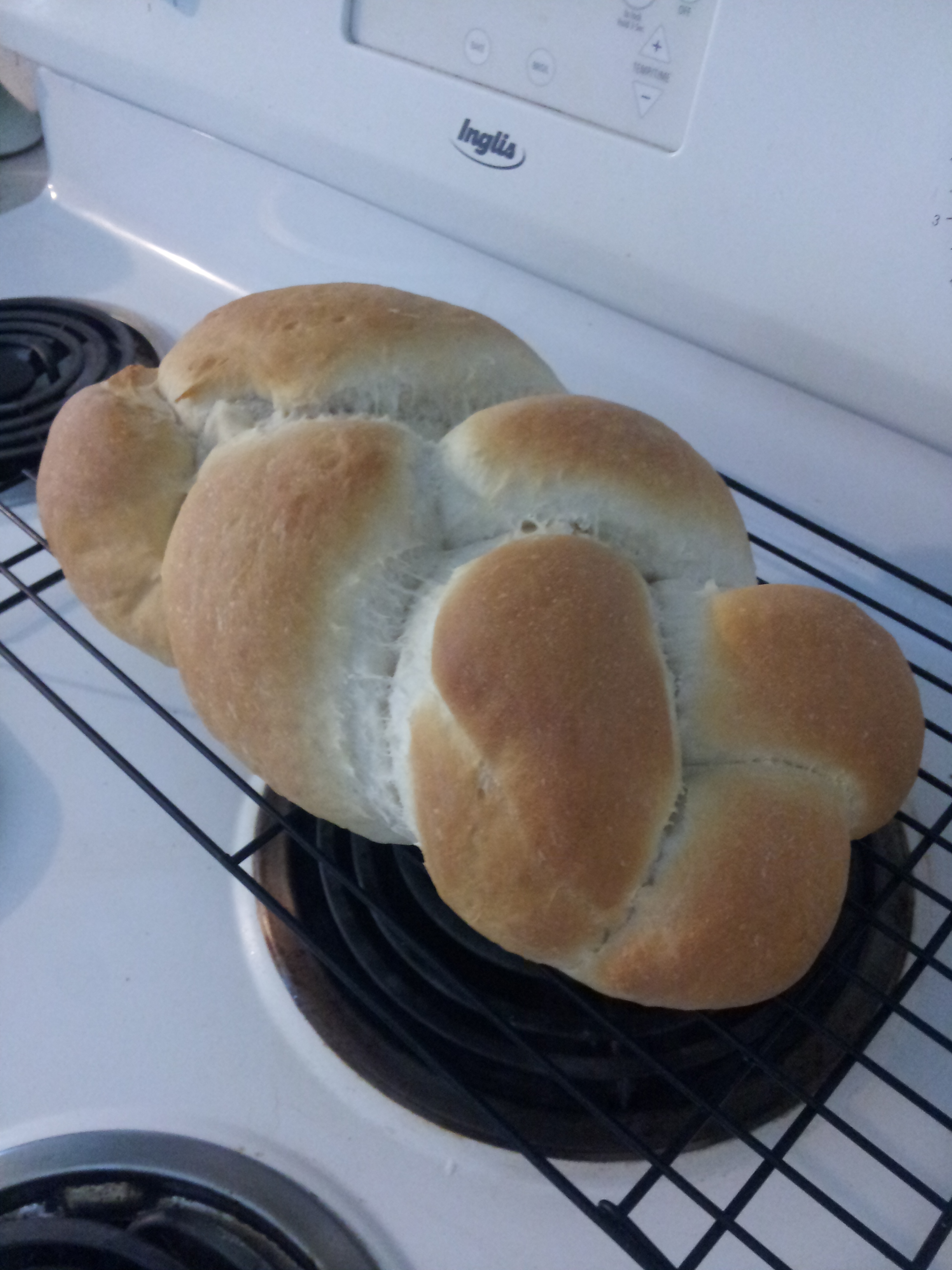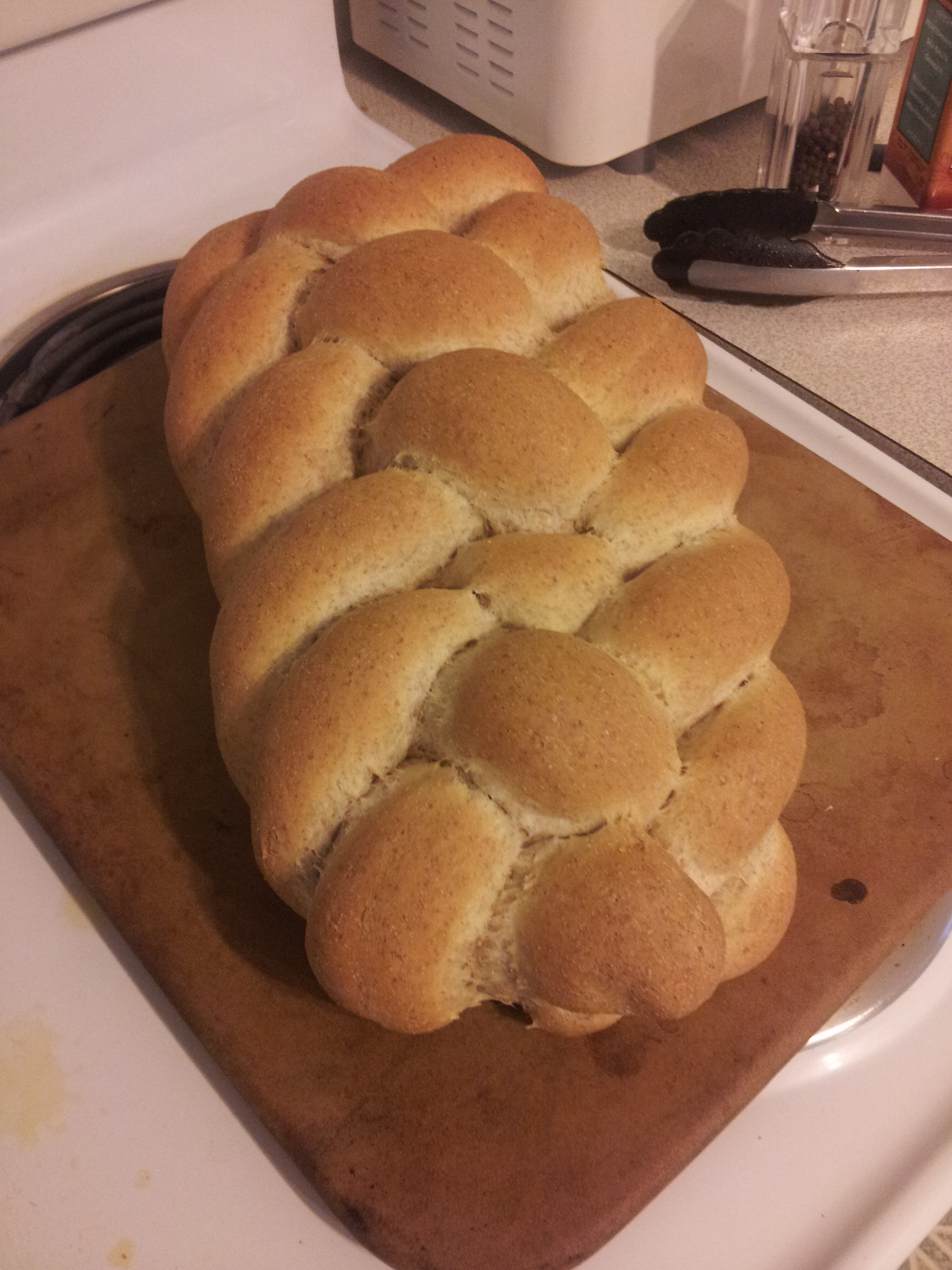 Now I have an excellent Black N’ Decker model that can make a 2-lb loaf, and I’ve been going to town. We’d been observing a family sabbath for over a year (or is it two?) but I made challah for the first time.