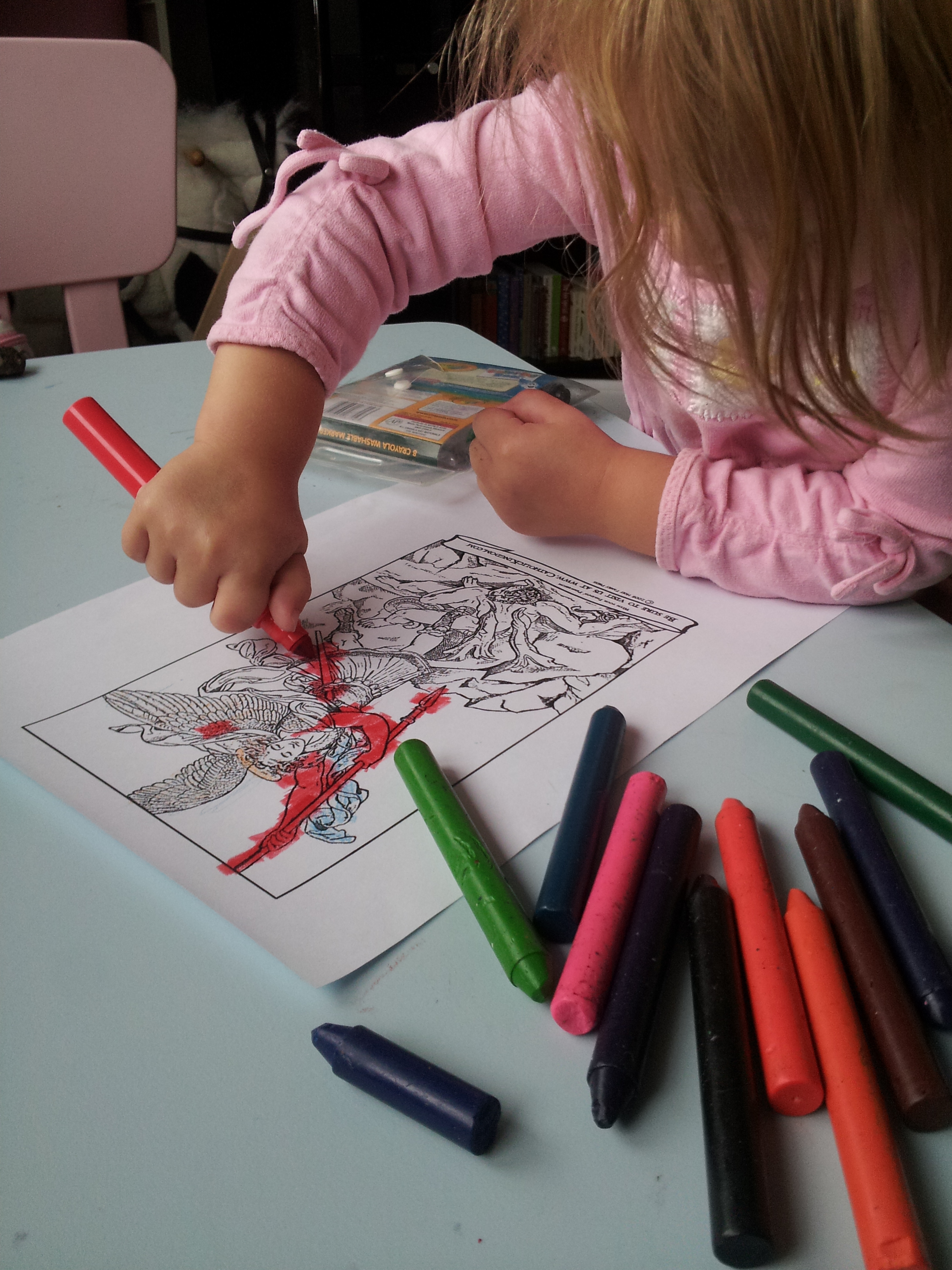 Trust Catholics to have a wide selection of coloring pages for every saint day. This is basically a homeschooling curriculum, one in which mama gets to eat a lot.