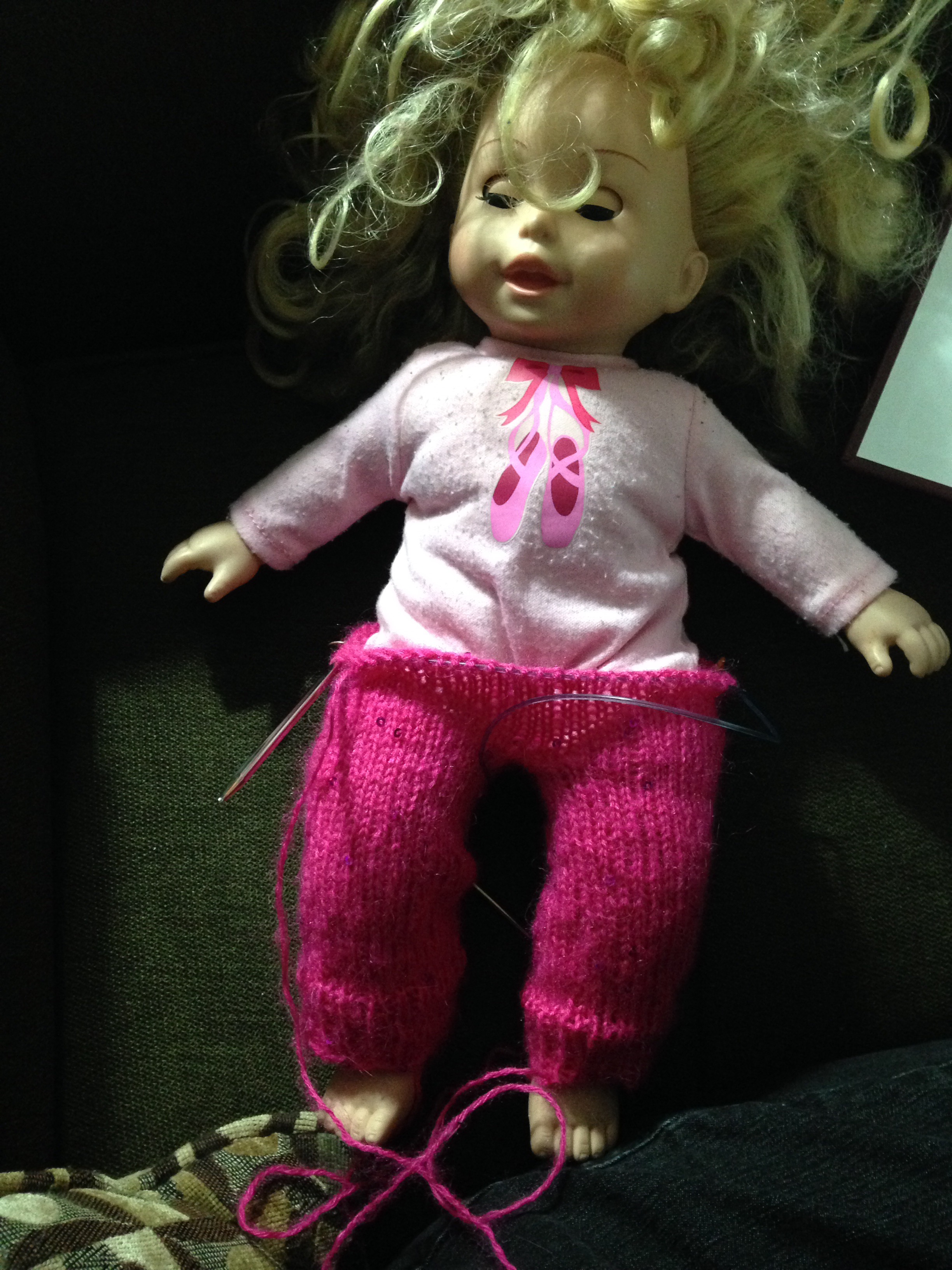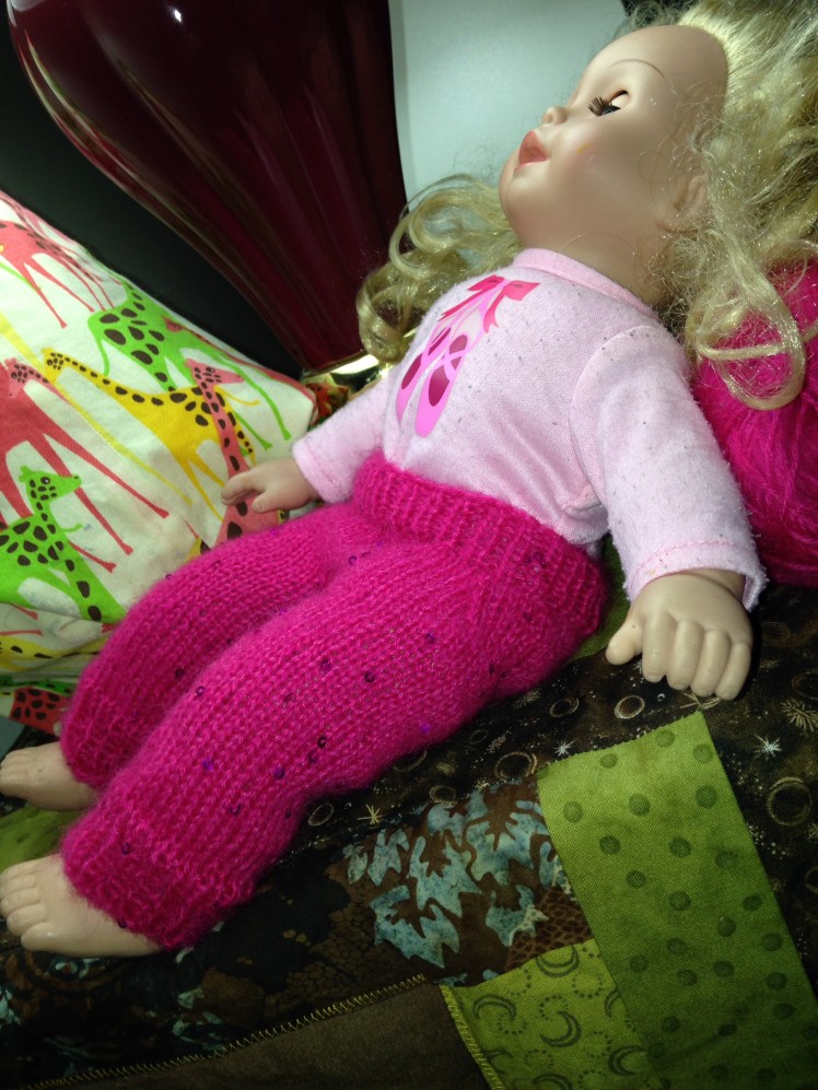 Pink Dolly’s hot pants were a smooth success. They went so fast. I don’t know if PD is smaller than she looks, but I kept trying them on her and being surprised how far along I was.