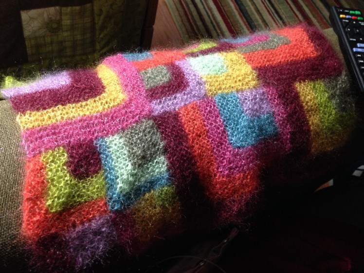 It’s time to shift back to the present tense. Last time I was updating you on something current (aside from the tricolour bag), I had just cast on three projects involving mohair. Of those, one is done, one is a third done, and one is maybe an eighth done.