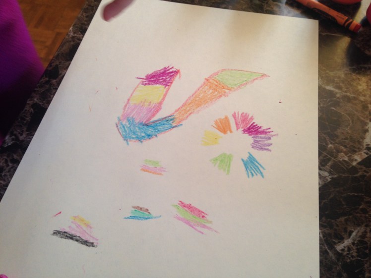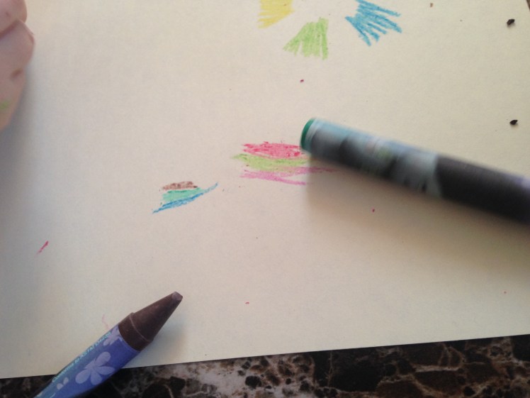 So perhaps it’s not surprising that, Saturday morning, when we had the girls situated for a bit of painting, and Jared was out on an errand, I found myself pulling out their new Crayolas and messing around.