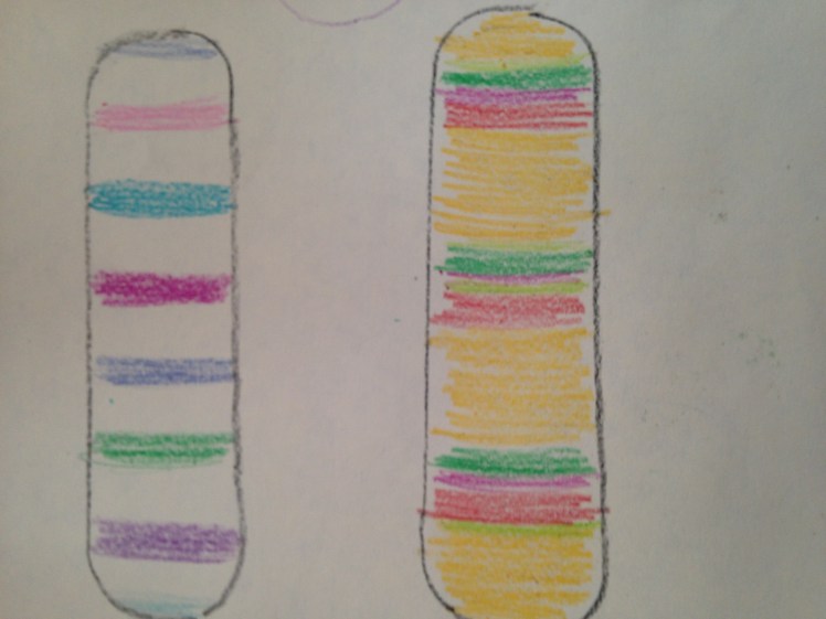 Then she drew a shape and started filling it with stripes, calling it a “color practice.” So I tried that, drawing a losenge and trying some combinations I’ve e been thinking about for sweaters.