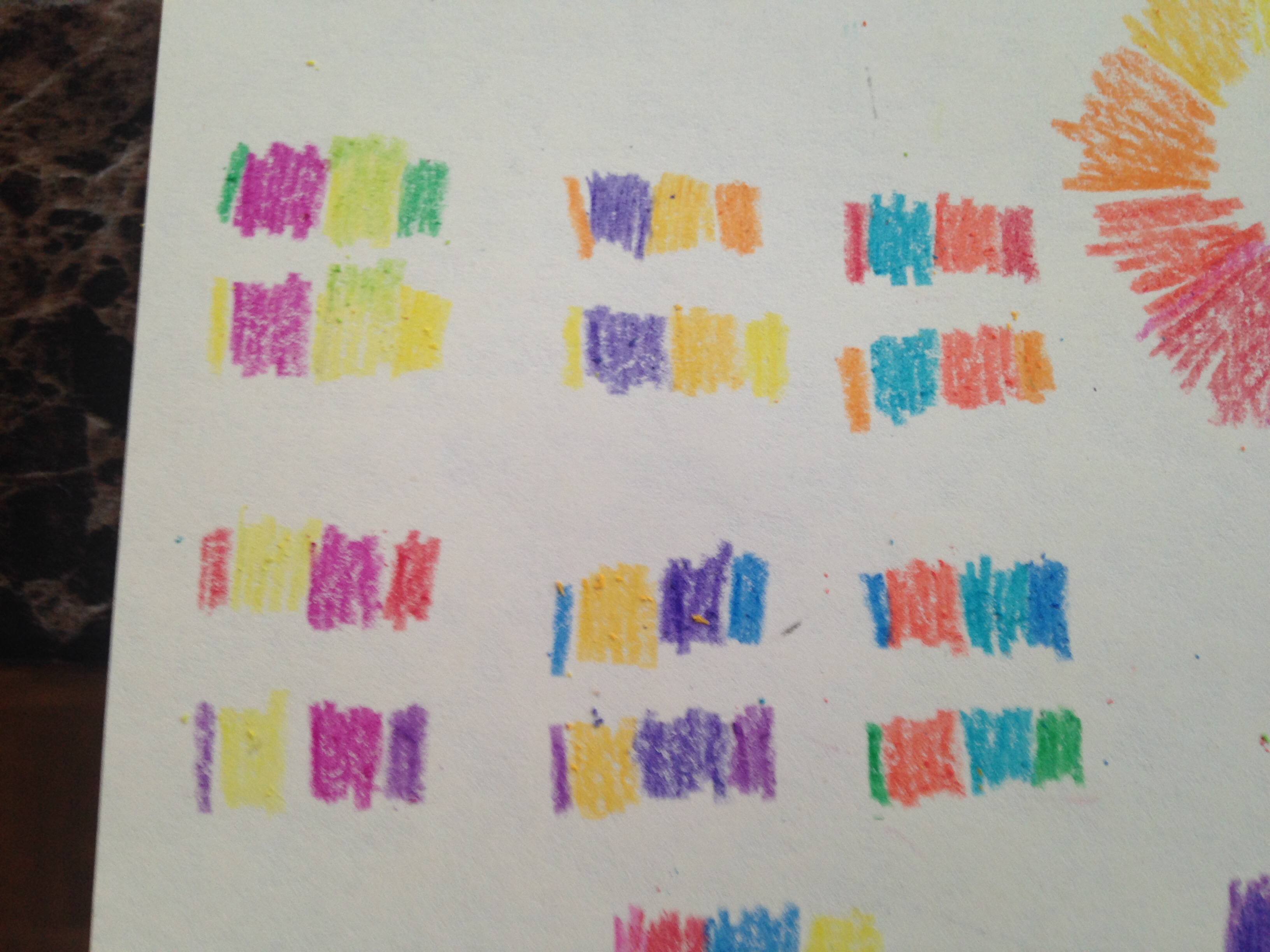 So perhaps it’s not surprising that, Saturday morning, when we had the girls situated for a bit of painting, and Jared was out on an errand, I found myself pulling out their new Crayolas and messing around.