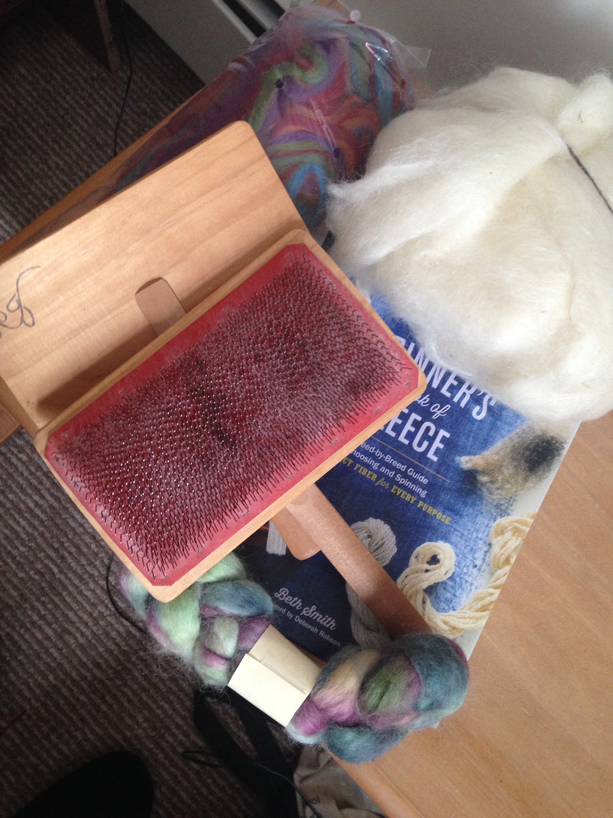 I felt like a poser – I had the stuff, but not the love. It’s been so long since I’ve made time for spinning that I’d taken it for granted that I couldn’t make time for spinning. The truth is, it’s been a long time since I loved it, since I really connected with it, though I’m sure I must have at some point. I’ve seriously considered selling my wheels and stash, just because unused useful things are oppressive to me.