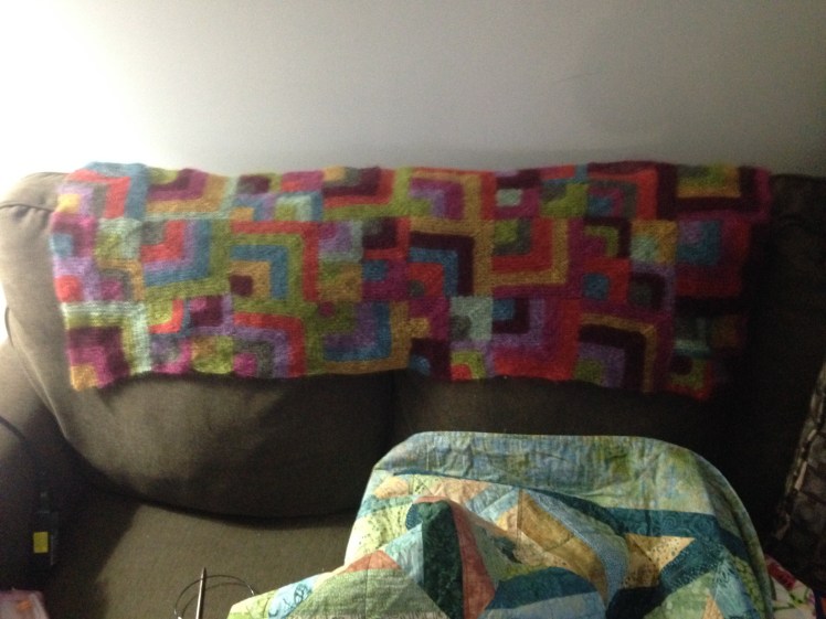 So I don’t know. I don’t know how much balance matters since I’m probably going to be wrapping it around my shoulders, not hanging it on the wall (though Jared has threatened to make it a wall hanging if it just sits in my drawer). I kind of want to just be done with it, but that little bit of extra love might make it more useful and wonderful.