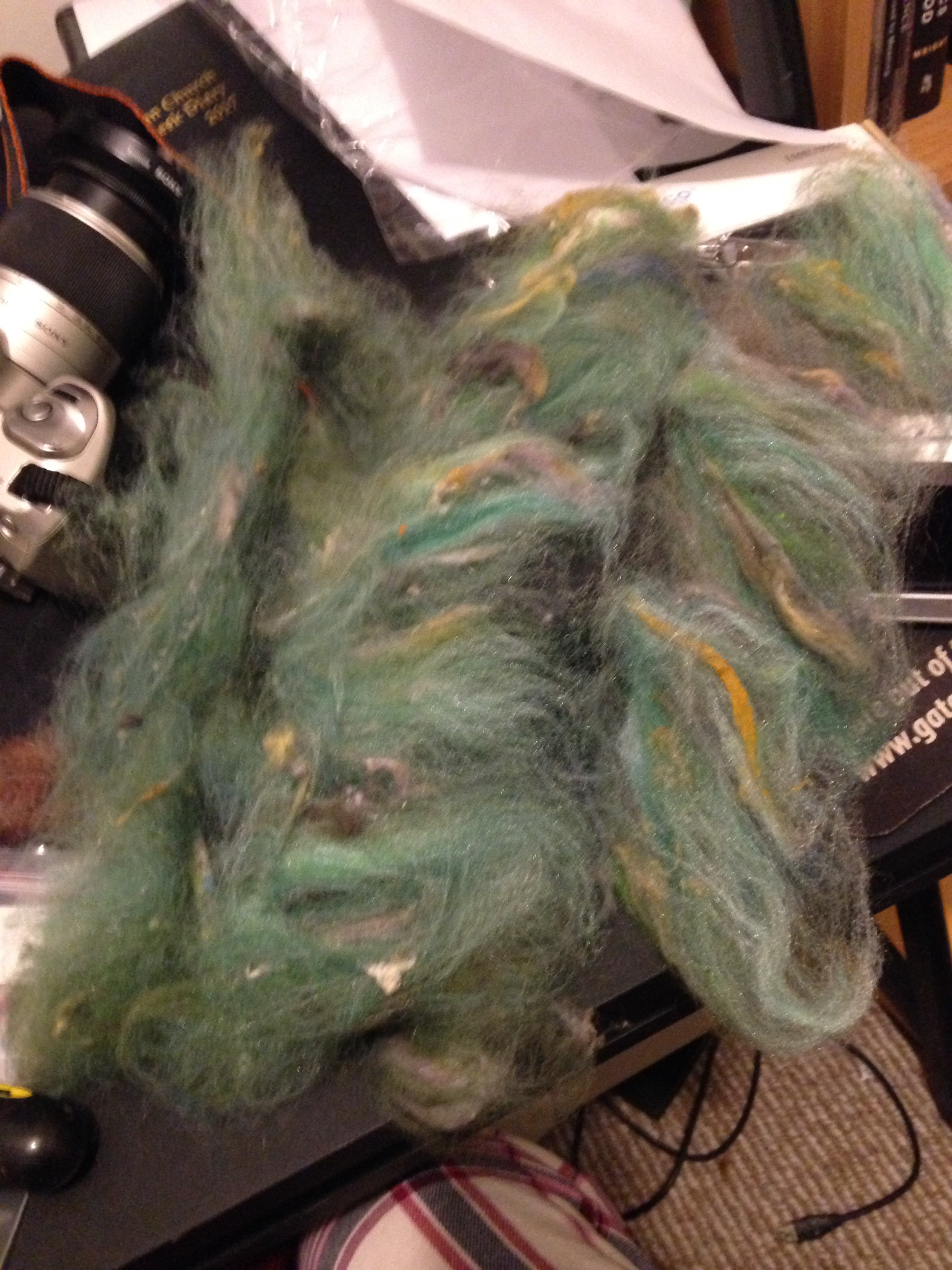 I floated this suggestion on the Wool N Spinning ravelry group, and Rachel pointed out that this plan could work well, as long as I was okay with the colors blending a lot. I cheerfully contradicted her, saying I suspected the pops from the silk noil would stick around. She, very politely, said nothing, and let experience by my teacher.