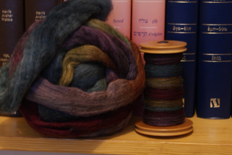 So those are my knitting meditations. What about keeping the knitting on the small side, and diving into a larger spinning project instead?
