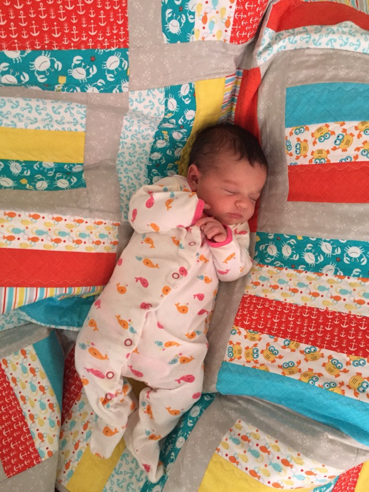 Baby D enjoys her first quilt by Mimi, my MIL. My Maryland-loving heart feels awfully sentimental about the blue crabs.