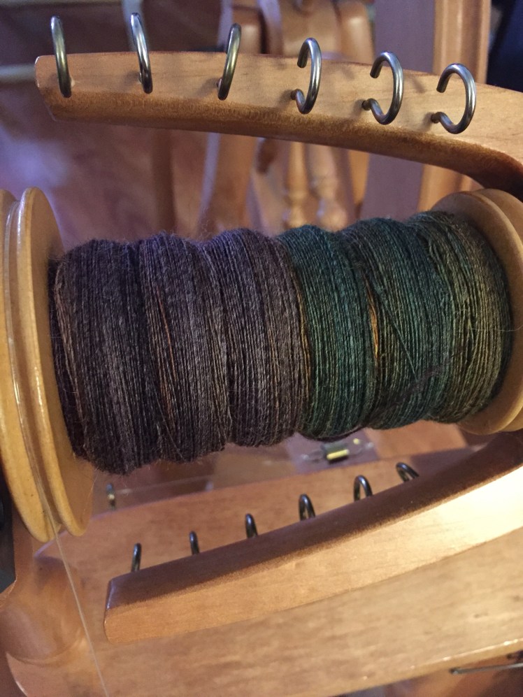 I finished the third bobbin and started the fourth before baby was born. Thanks to Jared spending many cozy evenings with his daughter, the second bobbin was done and the yarn plied while it was yet May.