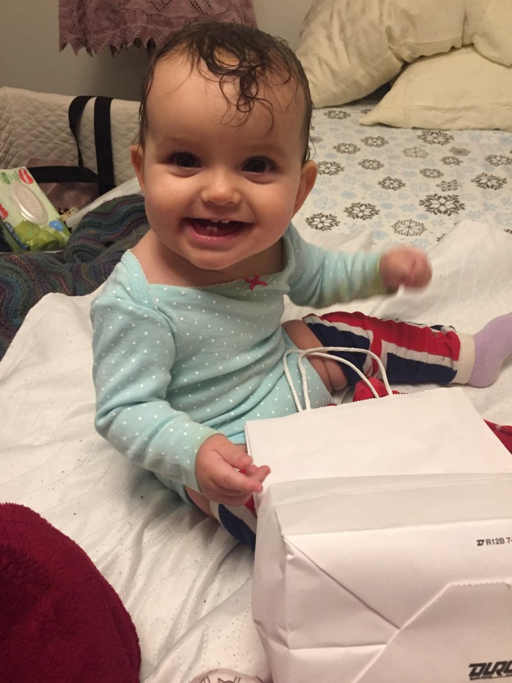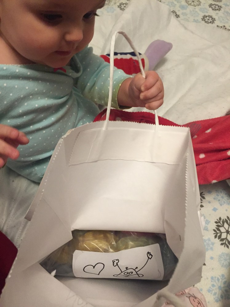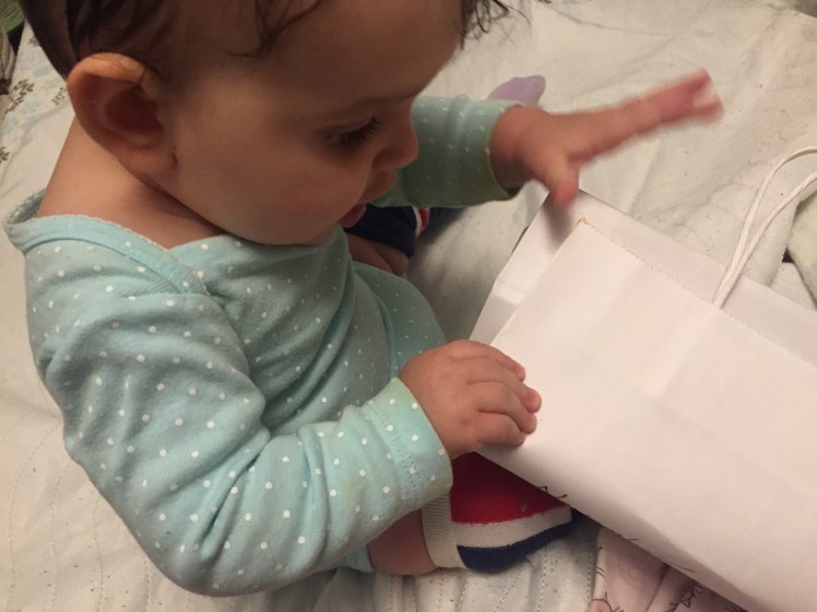 It was almost bath time when I decided, to phooey with it, we’re just going to open the next secret bag from Didi!