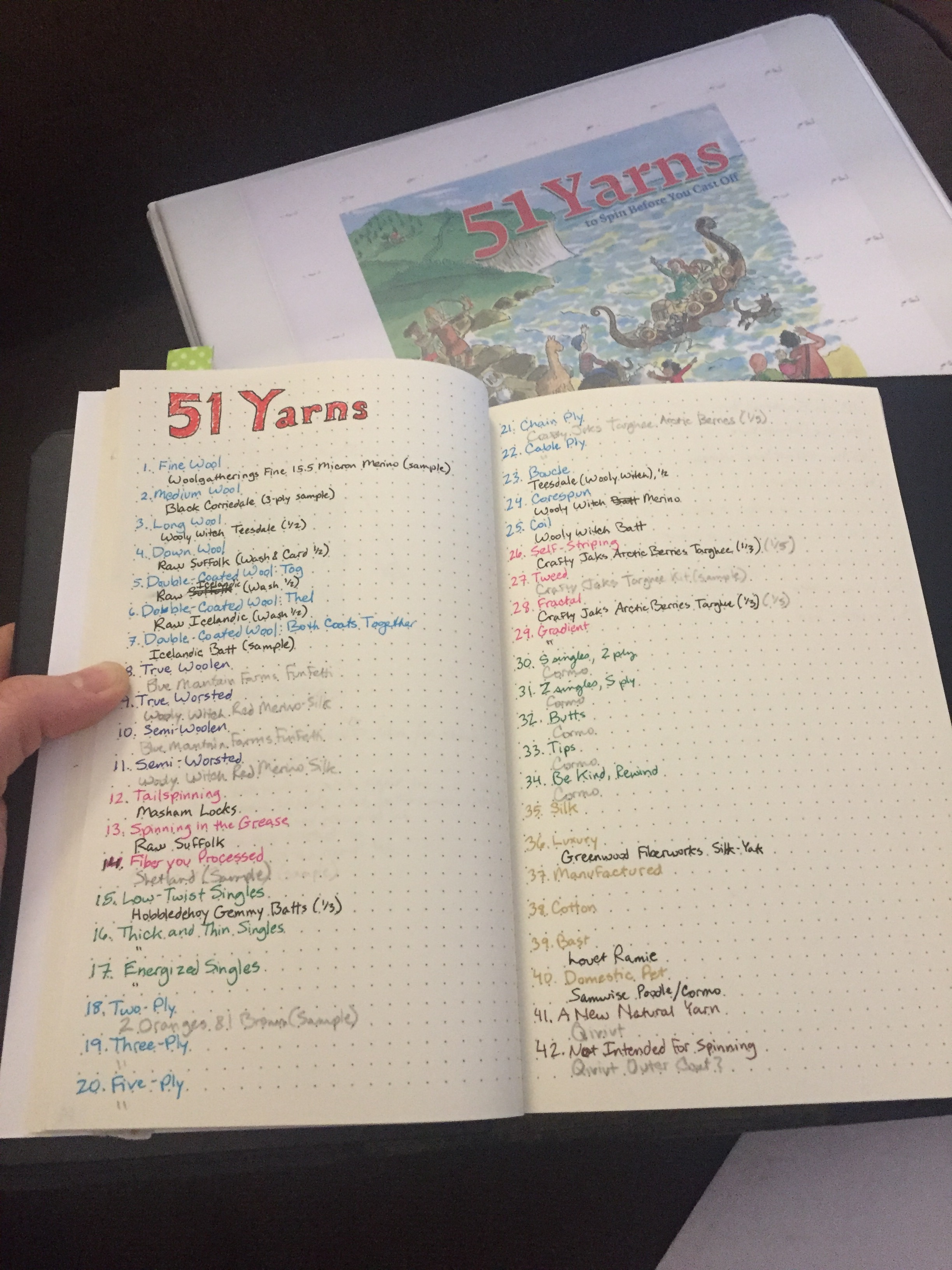 What’s so cool about this study is that it’s like a survey course. You could come back to any of these chapters and make an entire career just exploring that topic. Many spinners focus on a narrow range of yarns covered by only a few chapters. In fact, I’ve already tried many of these techniques and wools before. But I won’t be repeating myself; there’s just too much to explore. And, ahem, you know how much I love working through a complete book in a neurotic an orderly fashion.
