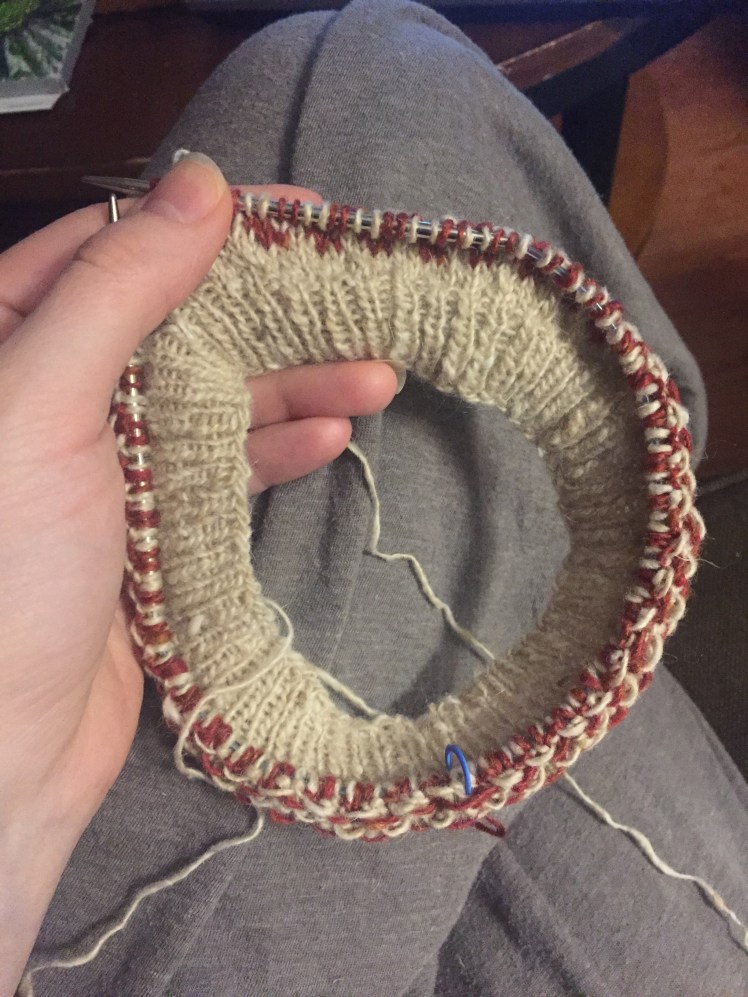 I don’t know what pushed me over the edge into casting on. I think I was pushed into a case of YOLO/FOMO by a migraine last weekend that had me spending most of the day lying around thinking about making all the things. I was also feeling stuck on sleeve island and needed a jump start. So I said “forget it” and cast on six days ago.