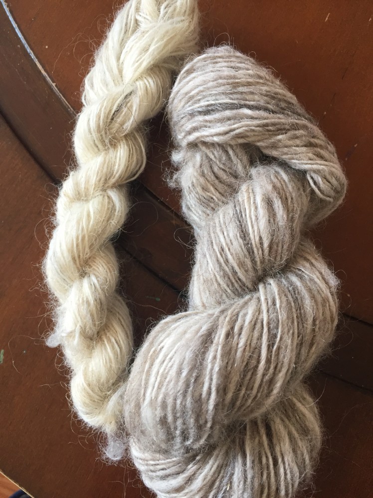 Here it is alongside its Tog partner. They are both very hairy, but one is taut and inelastic, while the other is one of the bounciest things I’ve ever spun. (Not bouncier than the down, but close.)