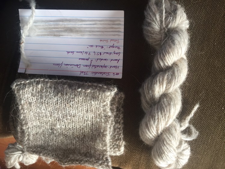 This yarn would be fantastic for a really cozy shawl. If I had the entirety of this fleece, with the tog being a smallish percentage of it and the thel being so nice, it would be easy and fun to separate out the thel and make a wonderful singles. I’m thinking Faroese style lace, large and rustic on a garter stitch base.