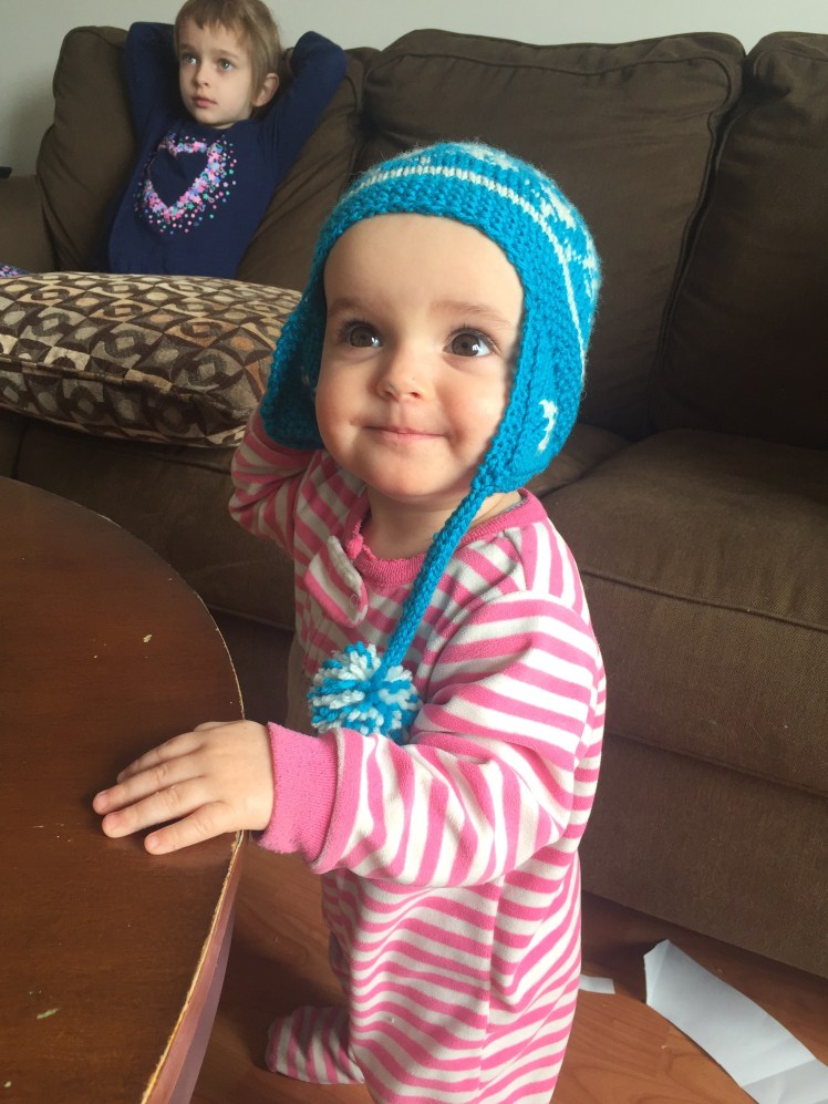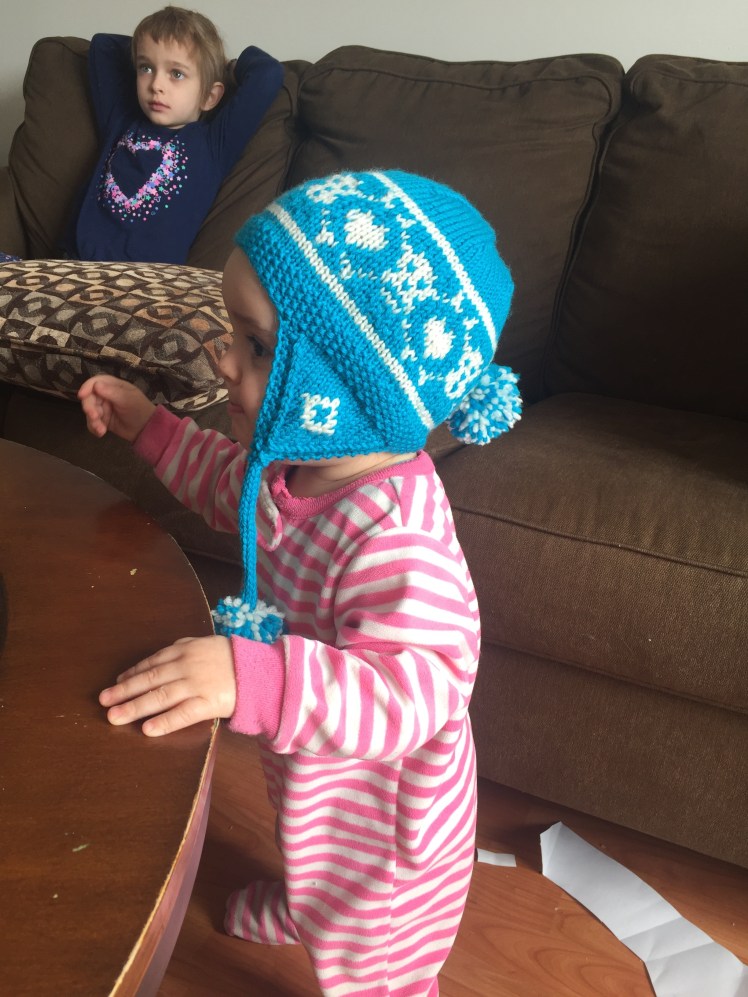 I also made a wee hat for an incoming nephew. I don’t think my brother or his wife go anywhere near this blog, so I’ll post it here: