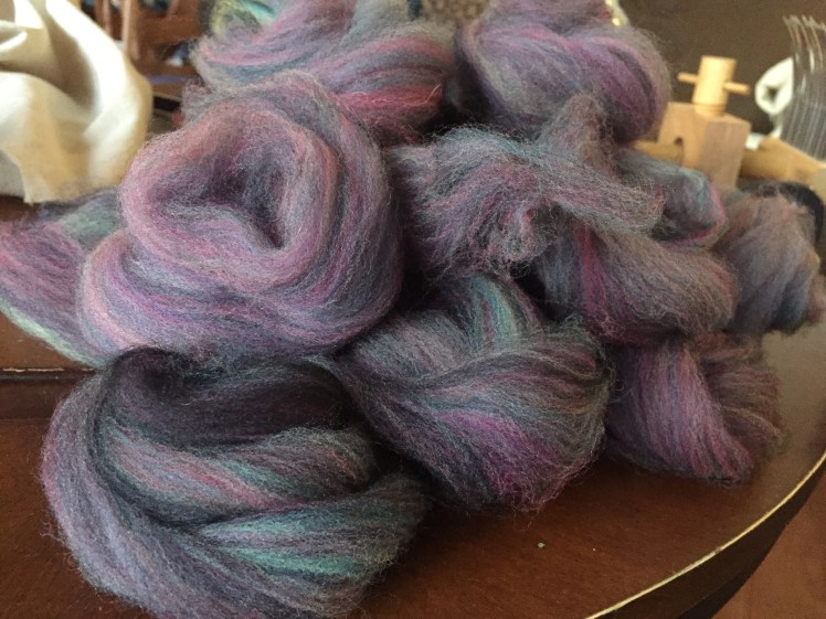 Combing I have always found more challenging, but I was determined to take the time to make some progress. In my worsted and semi-worsted yarns, I’m blending my worsted yarns as 2 parts coloured targhee and 1 part black Corriedale.