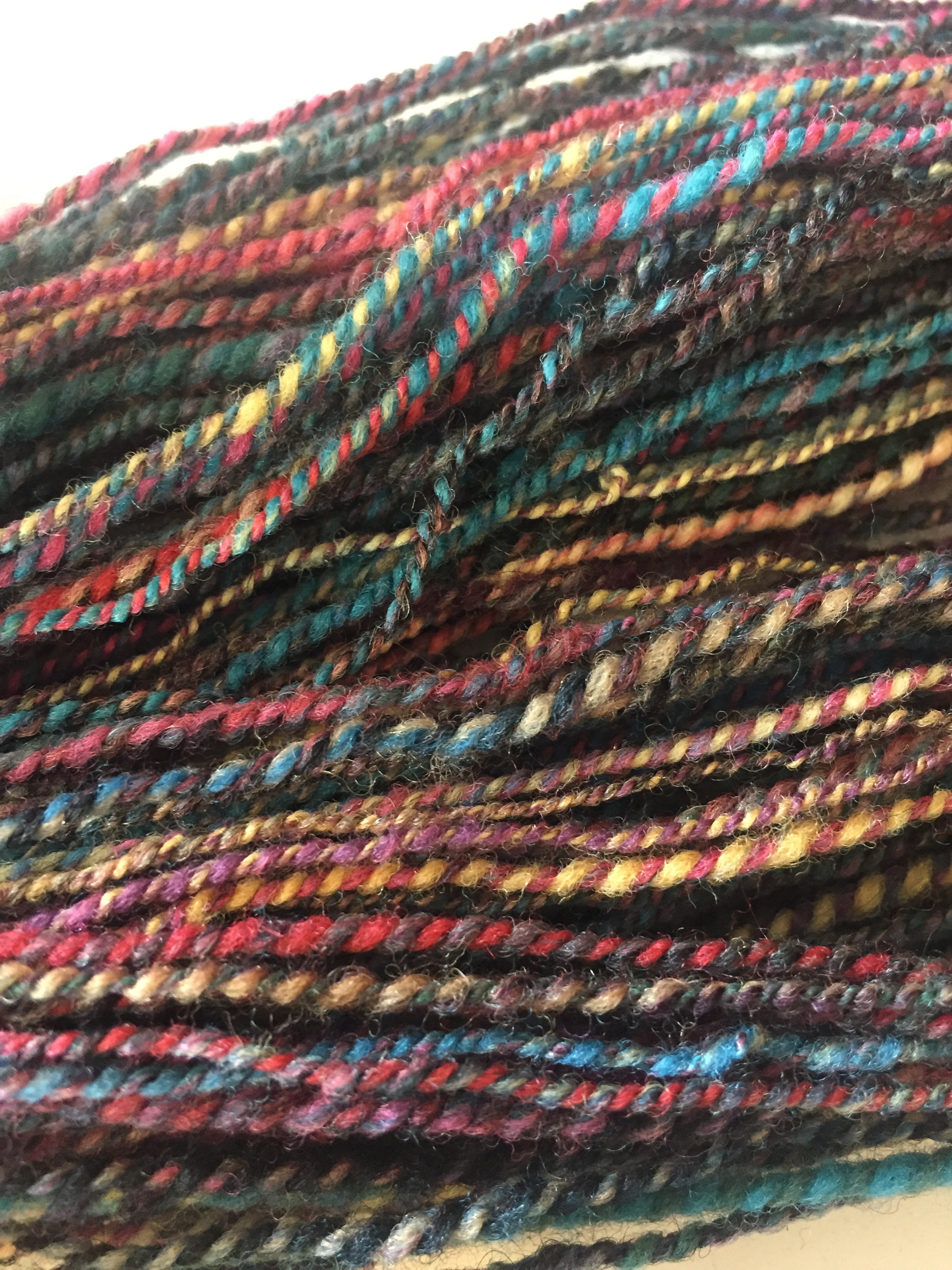 I sought to emulate the semi-woolen spin in singles size, twist, ply, and knitting. I ended up with a very similar WPI, and a slightly higher grist.
