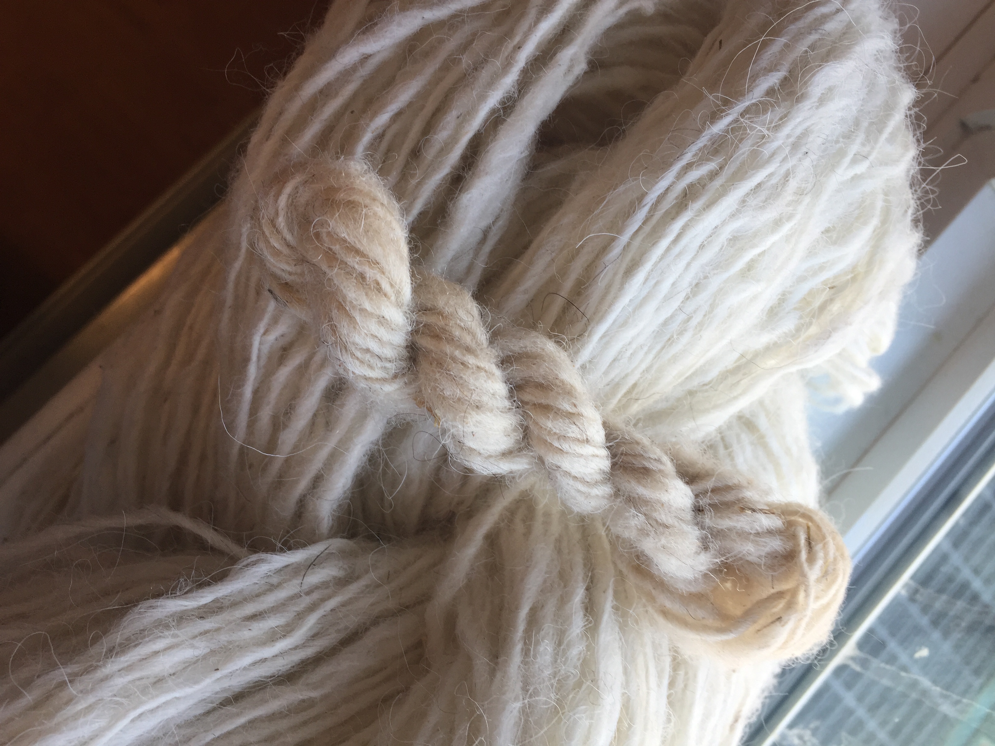 After fulling, the yarn feels soft and fluffy to the touch, while still being plenty strong. The YPP is close to my previous skein – 1115 instead of 1153 – and a higher grist makes a little sense since I added twist and was more consistent, with fewer thin spots.