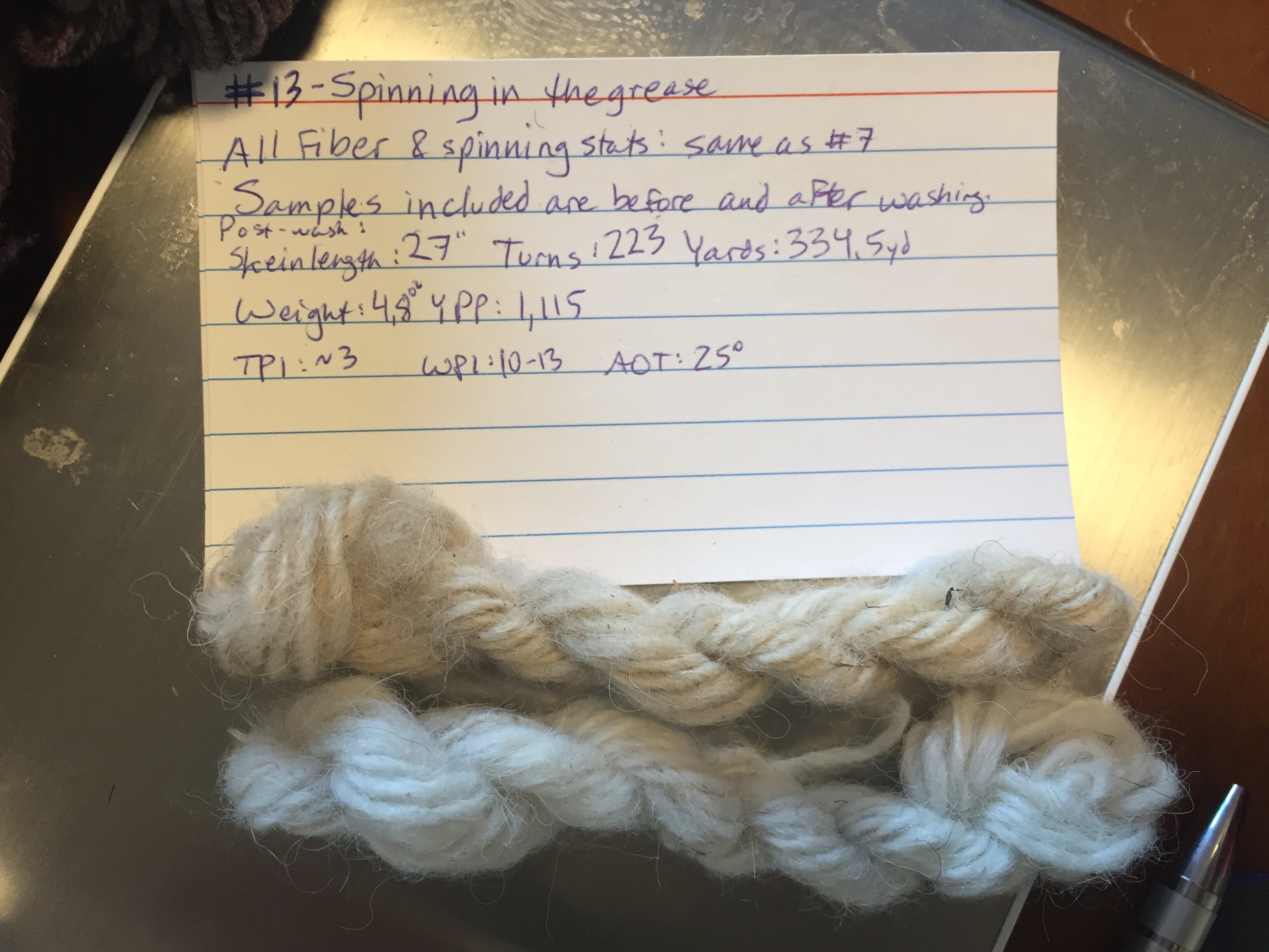 You know, I’m ok with that. It means that for me, spinning in the grease is about making do with what I have and redeeming my mistakes. That doesn’t mean I can’t learn new things from these experiences. (Apart from, you know, how to wash a fleece properly.)