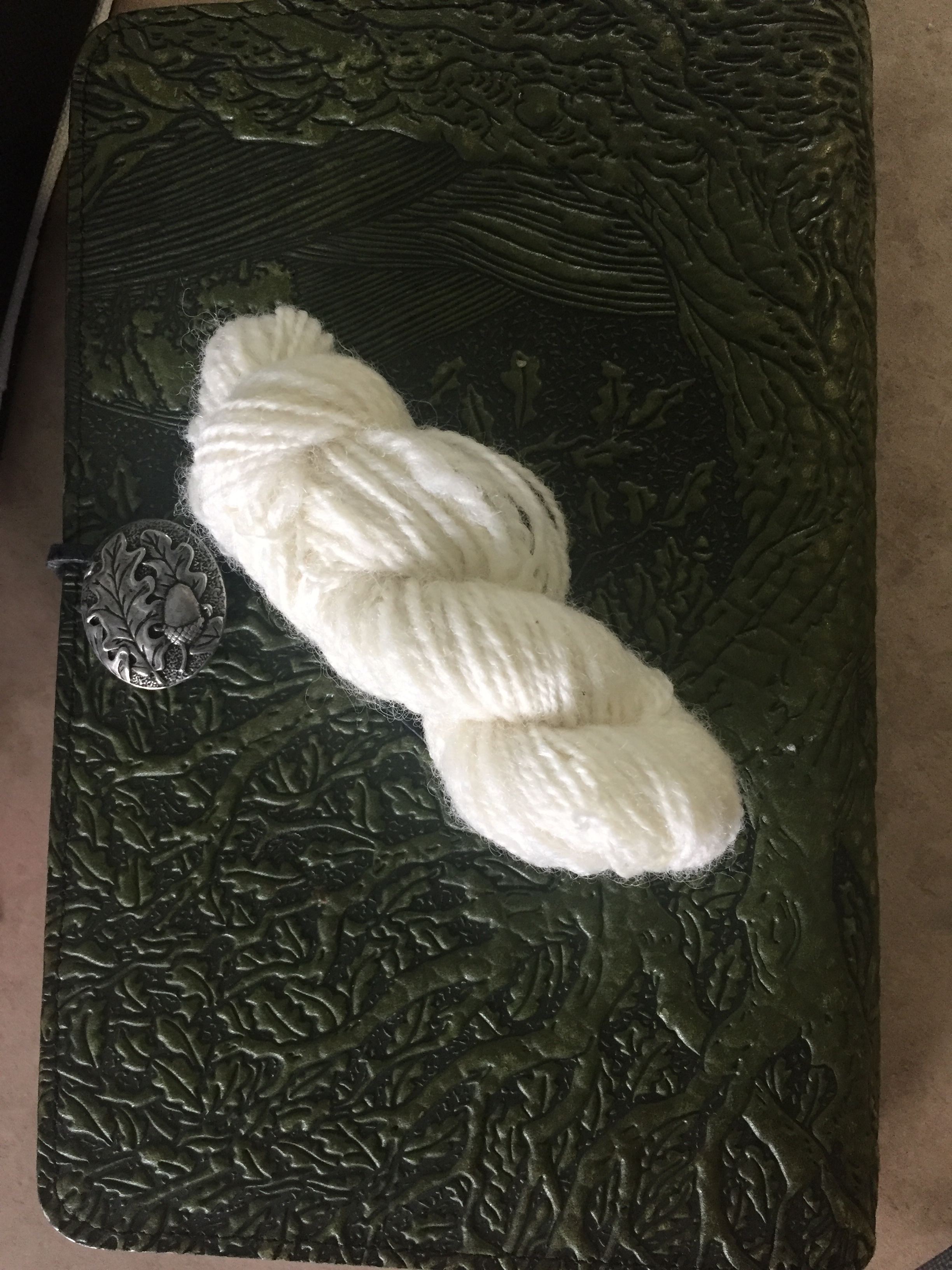 I started out with a couple ounces of North Country Cheviot, a gift from my friend Kelly in Alberta. I cleaned it up months ago and brought it on vacation to be my nominal spinning for the month.