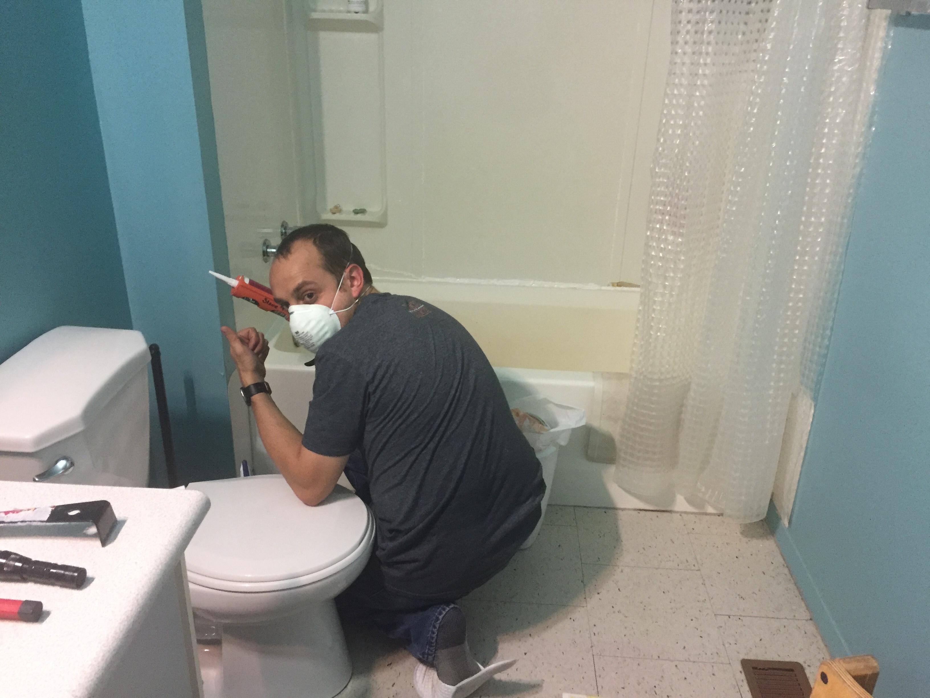 This month we’ve fixed a couple little things around the house, which was pretty empowering. We replaced all the caulk around the exceedingly unsealed bathtub (after reassuring ourselves with a view underneath from the crawlspace that there wasn’t any mold).