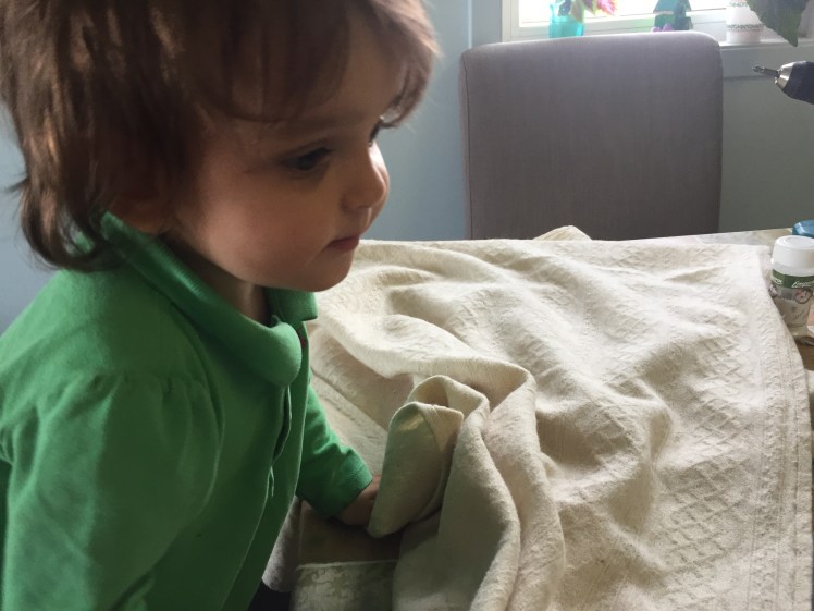 This journey started with a beautiful woven Oscha babywearing wrap that a friend generously gifted me back when M was born. It’s woven from linen and wool, and she found it too scratchy. I have a high scratch tolerance, but I honestly found it too warm to use for babywearing – there was never a season that was cool enough to need to be wrapped in layers of such a fabric, but warm enough that I didn’t need to wear a heavy coat over me and baby. It just never got used. But the fabric is so completely gorgeous that I couldn’t let it go. It’s got a linen warp and wool weft in a double-sided design that features Celtic braiding in a subtle double-sided texture.