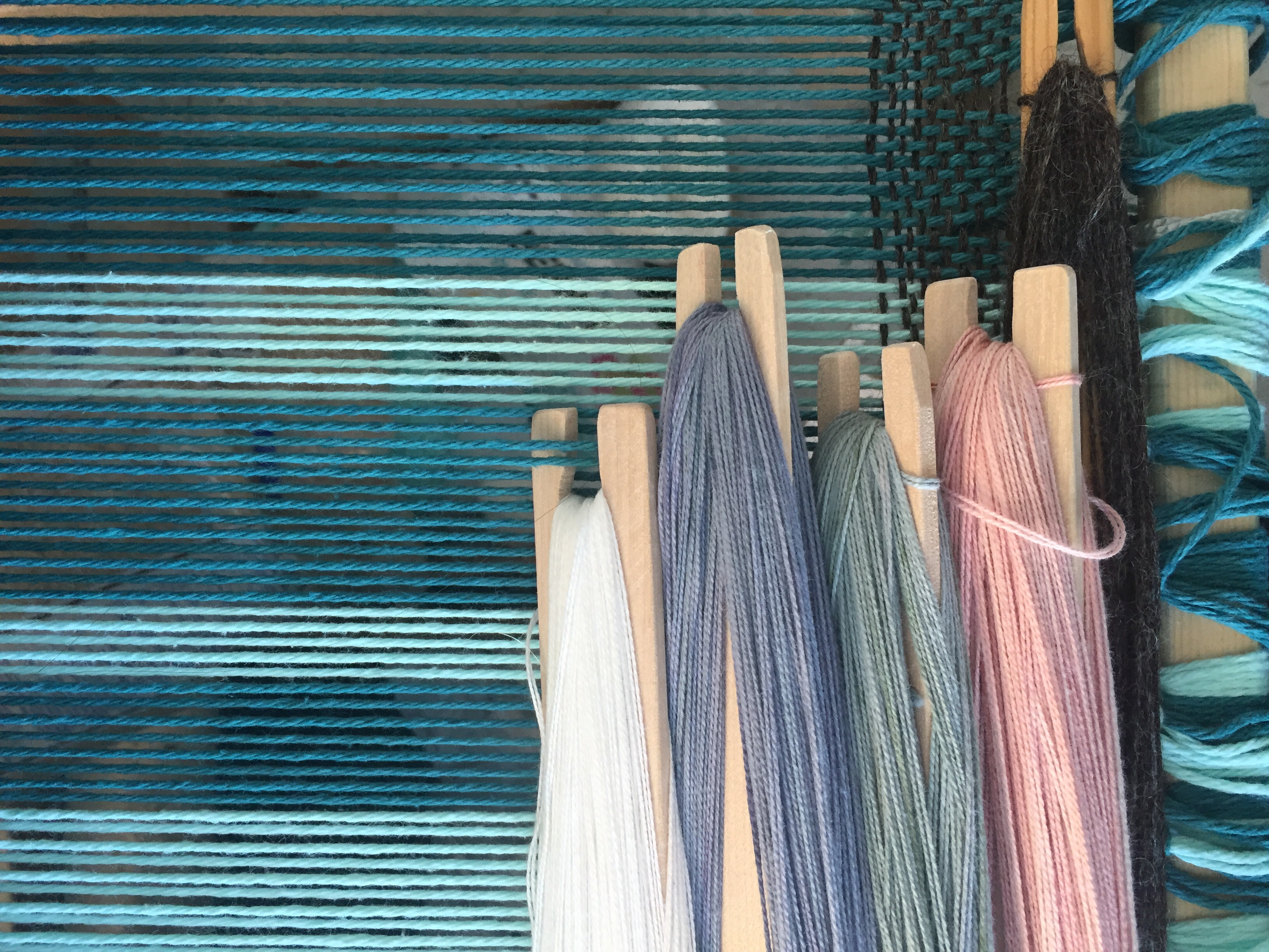 It’s different, and I enjoyed it very much. The other method, direct warping, is certainly faster, but it’s not always better. I will enjoy doing indirect when it’s preferable. Winding yarn round the pegs in that special cross pattern makes me feel so official as a weaver, you know? It’s such a weaverly thing to do!
