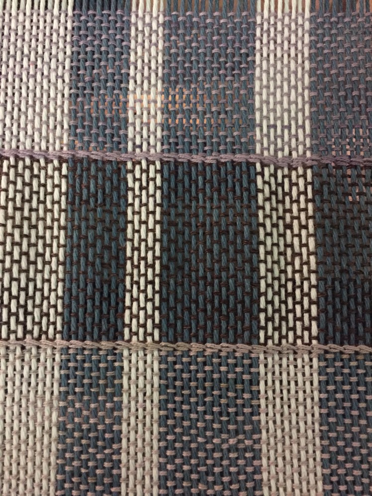 The third lesson was about the power of weft colour. The pattern is warp-faced, but even though the weft is fine and not dominant, changing its colour alters the colour of the fabric significantly.